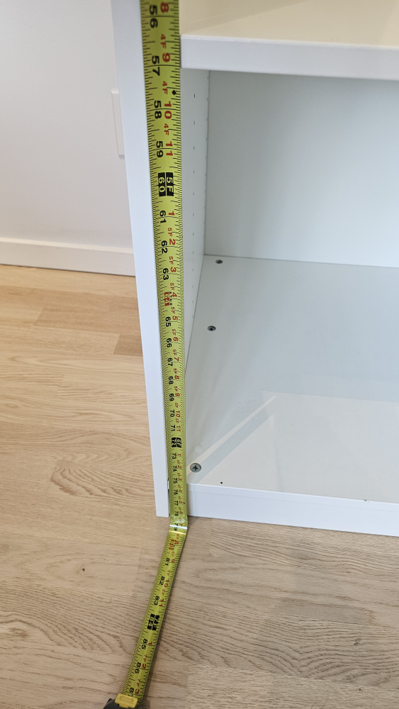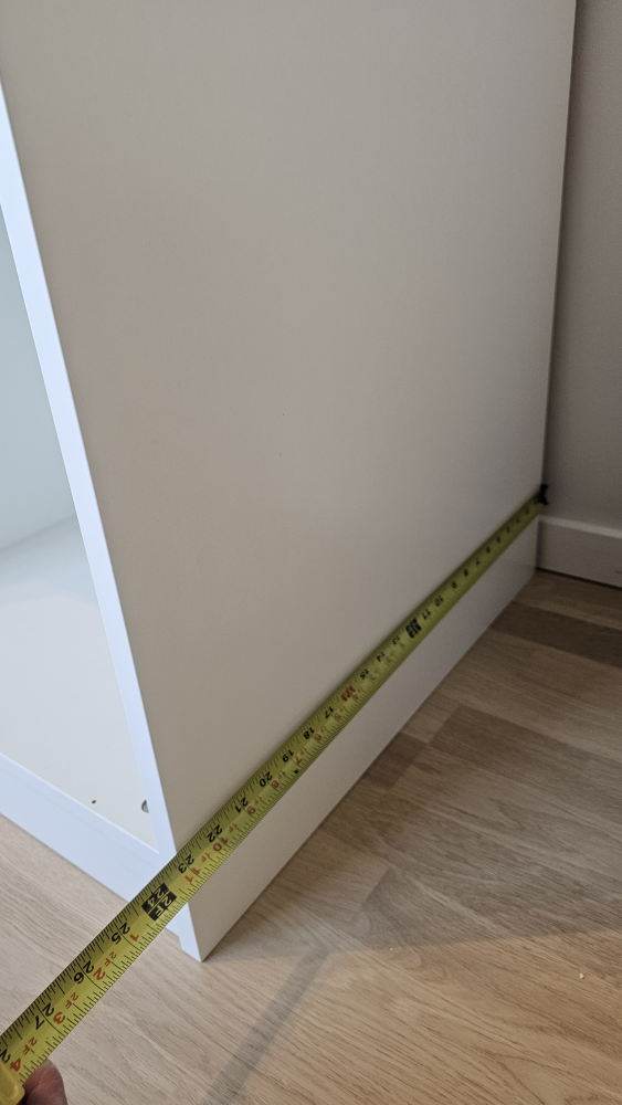 It measures approximately 23.5 inches wide, 22 inches deep, and 86 inches tall.