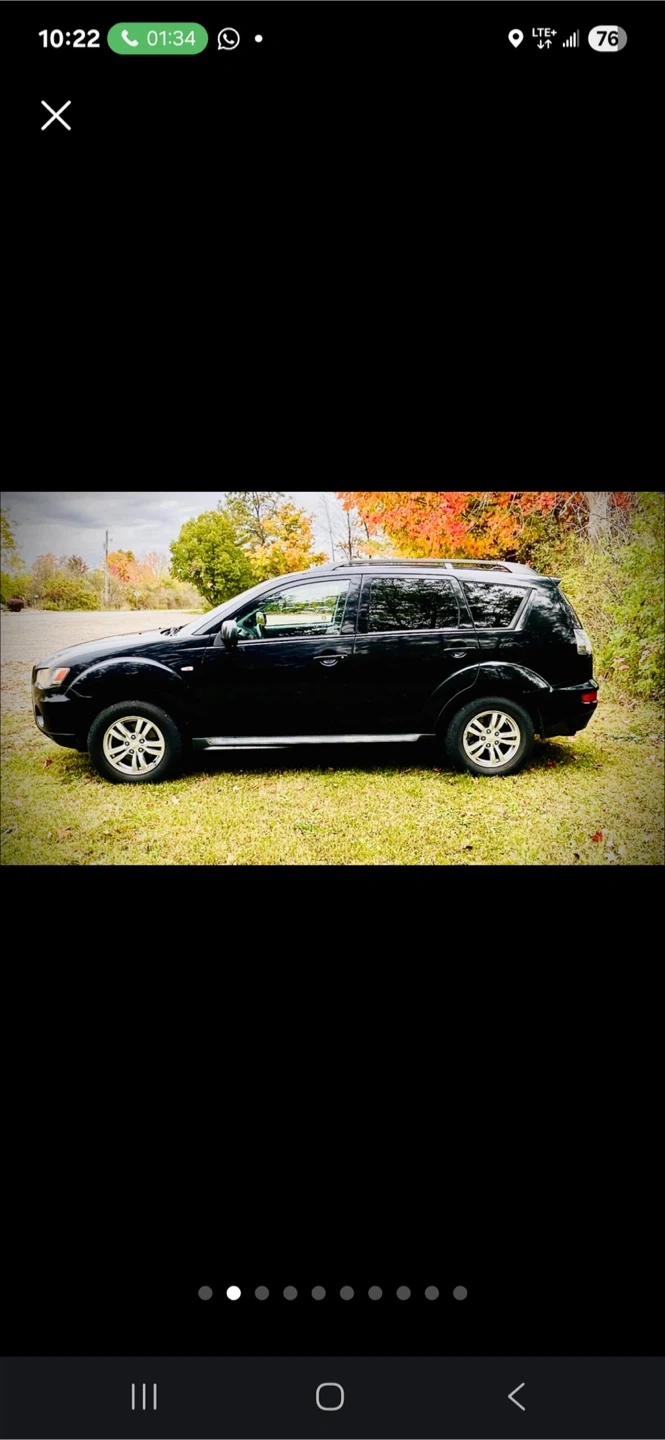 This is a black 2010 Mitsubishi Outlander. It's a four-door SUV. Mileage is 198667, great sound and perfect engine, exhaust pipe newly change and recently just did the alignment! Great speed and nice interior. Heater working perfectly. Buy as it is !