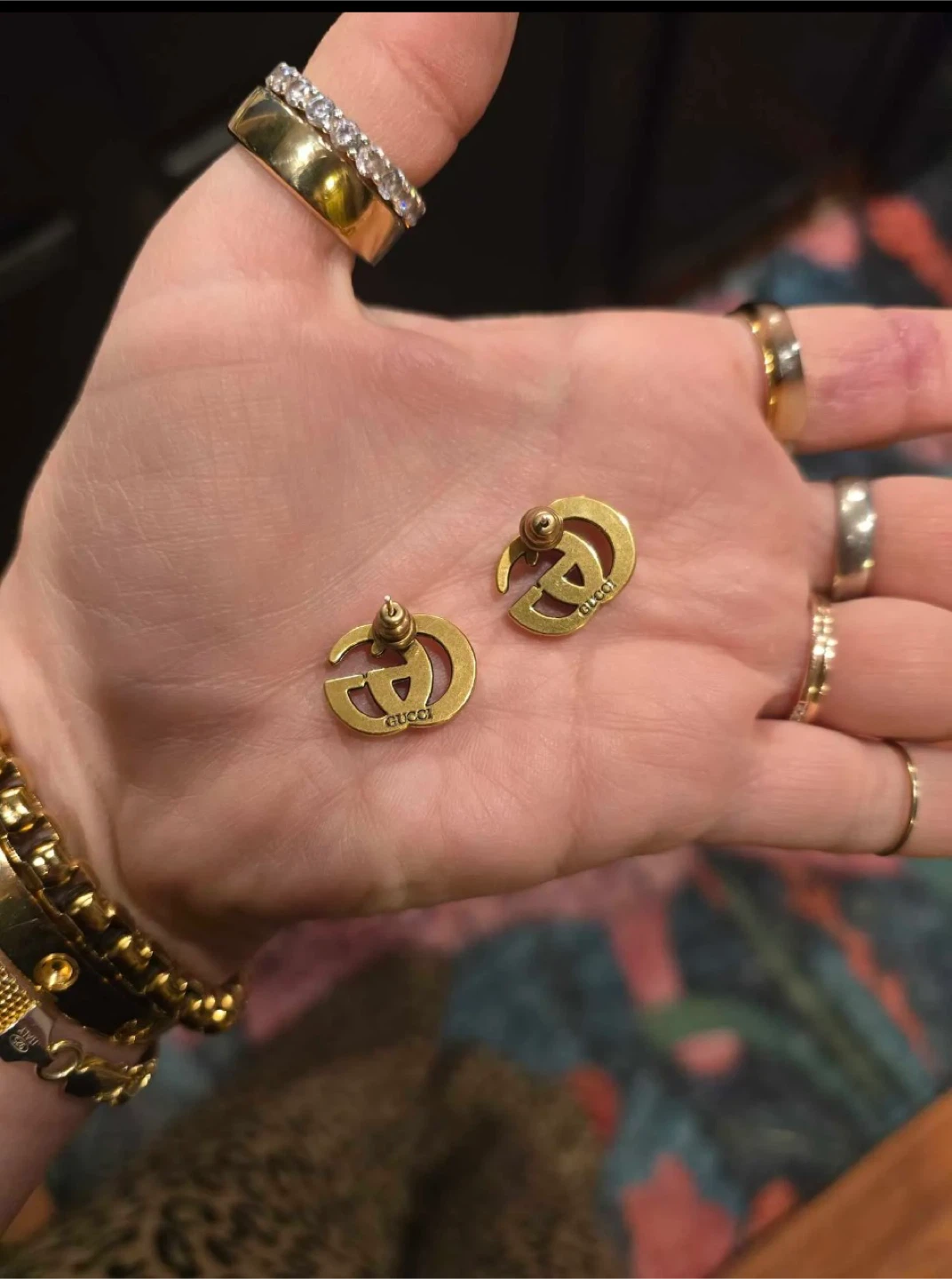 Selling a pair of Gucci GG stud earrings! These earrings feature the iconic interlocking GG logo in a gold tone. They are in great condition and would make a stylish addition to any outfit