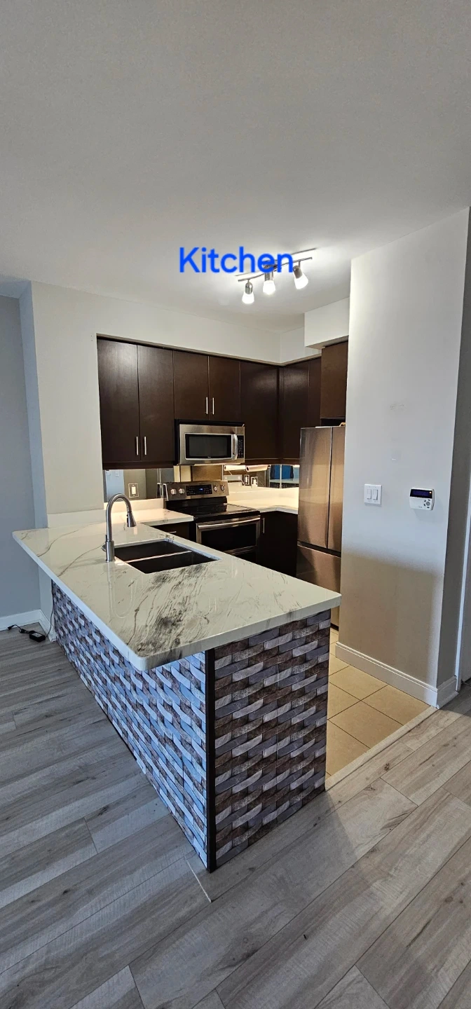 • Upgraded kitchen with quartz countertops + stainless steel appliances