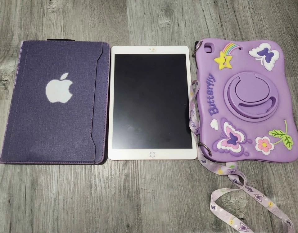Great condition iPad 8th generation with 128GB of storage. Comes with a case and an extra kids case (fits 5th Gen iPad). No cracks, scratches, or marks. Has a matte screen protector on, and I can include one extra screen protector.