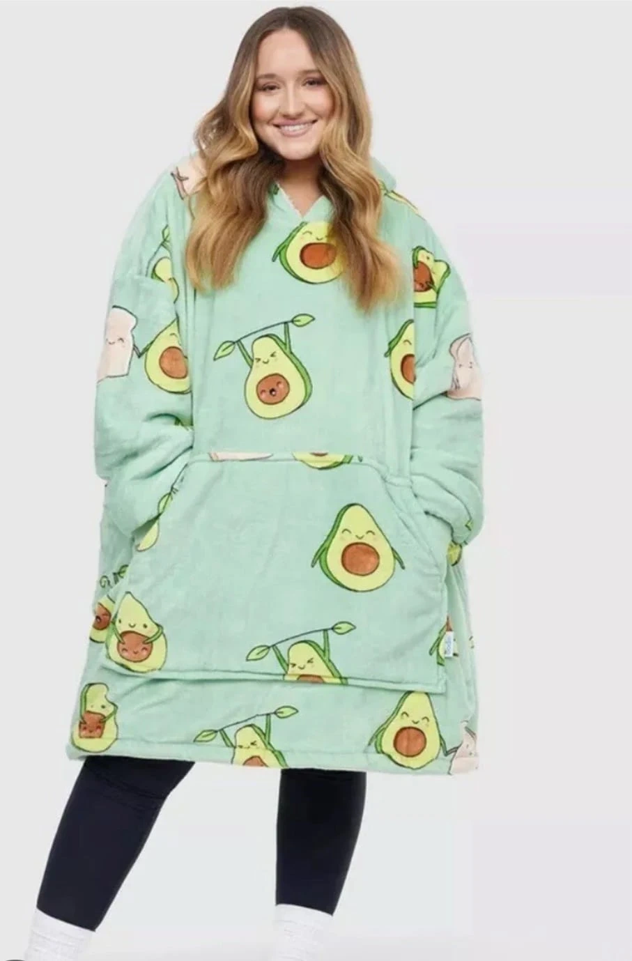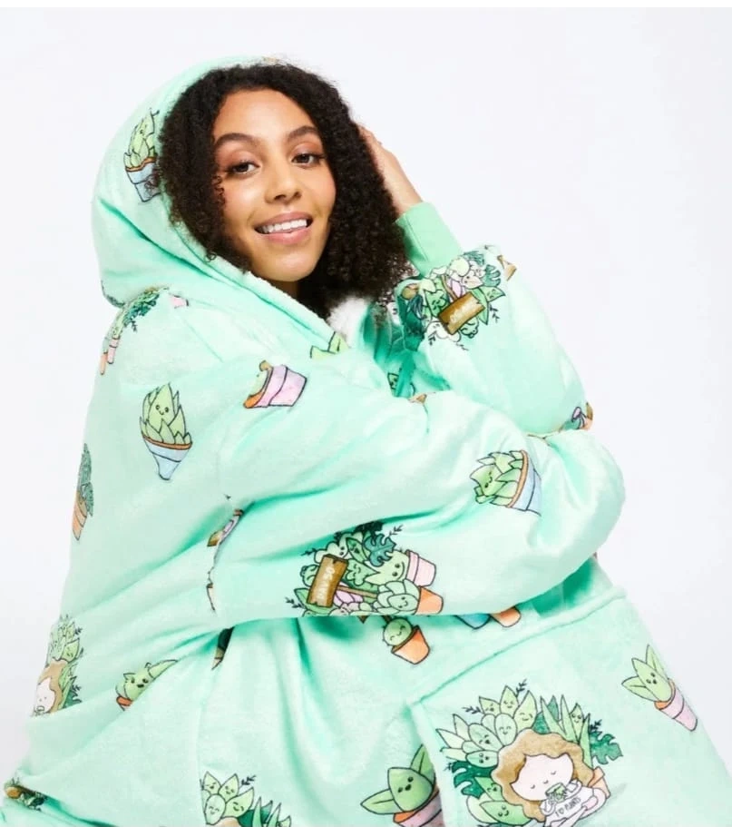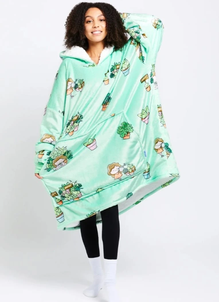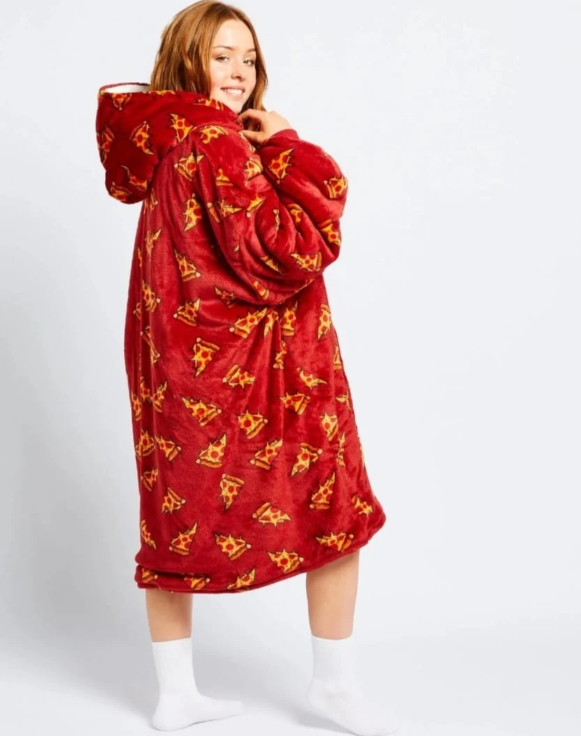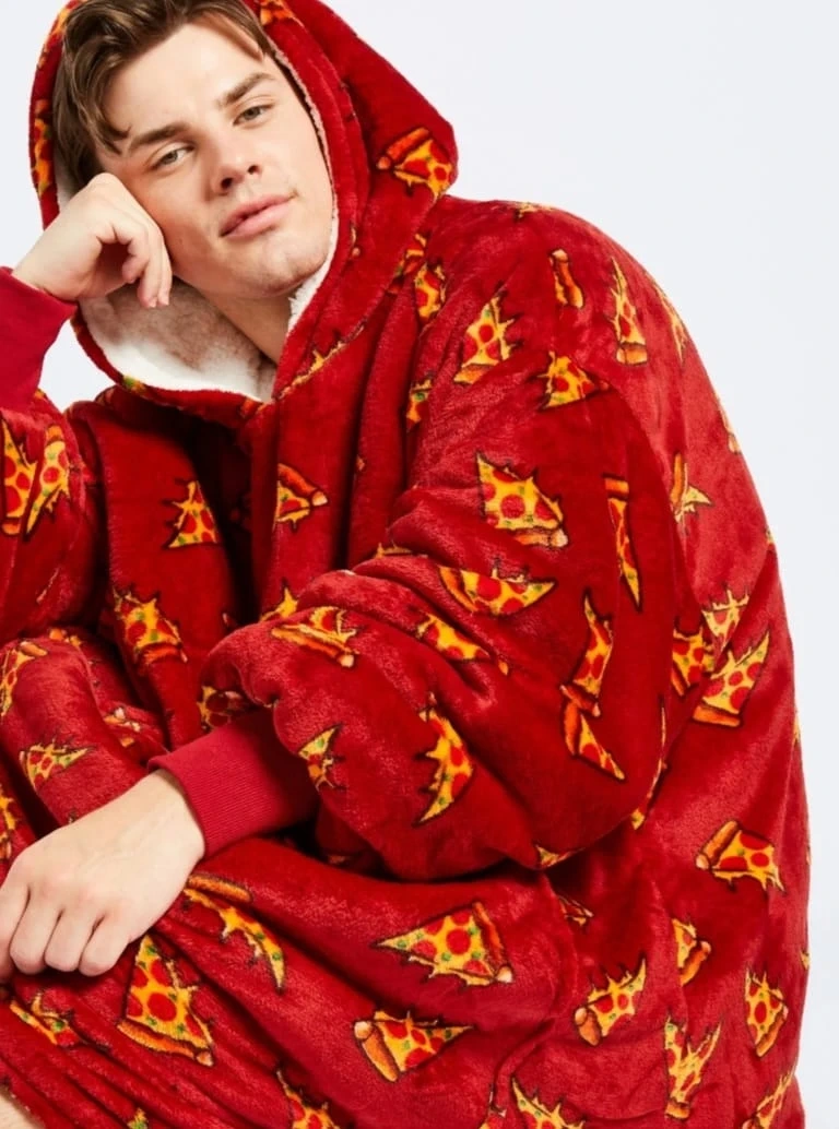 Stay cozy and warm with The Oodie! It's a super soft and oversized wearable blanket hoodie. Perfect for lounging around the house on chilly days. Available in fun prints like avocado, succulents, and pizza! $80 dollars each.