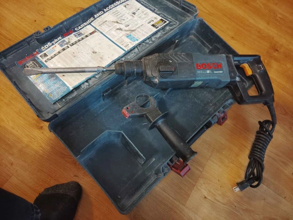 Bosch SDS Plus S4 drill and chisel set. Includes various drill bits and chisels for different tasks. High-quality Bosch tools for efficient work.