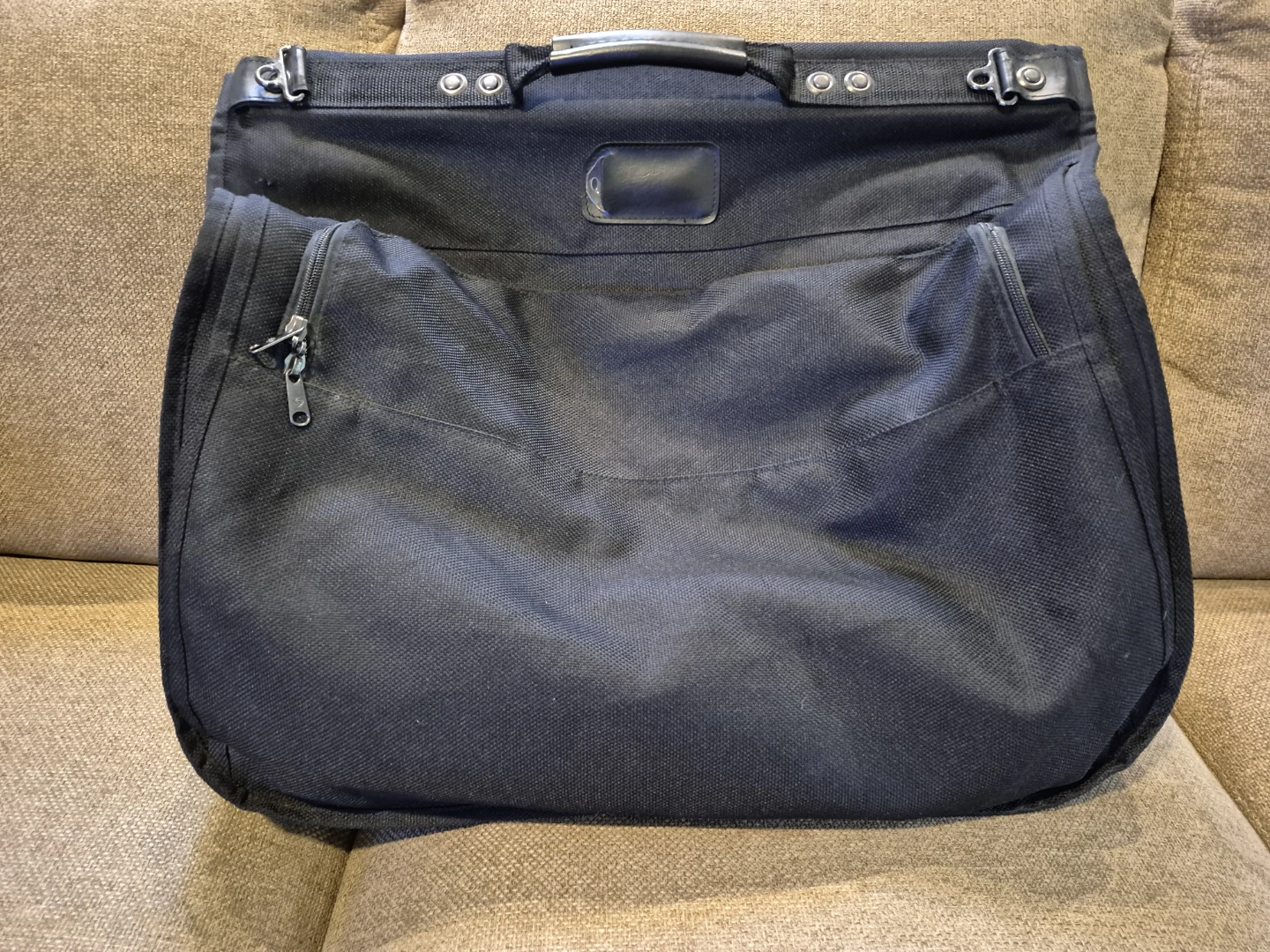 This fully featured garment bag is perfect for transporting business attire virtually wrinkle-free. • Hanger clip and multiple pockets provide exceptional organization. • Removable shoulder strap and podded top carry handle provide comfort in transport. From shoes to shampoo, ties to makeup, there’s a place for everything inside. It includes a hanger handle for easy packing and an extender panel to take care of longer garments. • Interior: hanger-hook bracket; two mesh pockets at top; compression straps; extender panel for longer garments includes mesh and WetPak pockets. • Exterior: 3 zip pockets. • Handles: shoulder strap; carrying handle. With the unisex design, both men and women can travel in style. Also, husband and wife can share one carry on bag if their schedules are not conflicting. With the considerate cross tie and buckles, your suits will be fixed in place, no crease, no wrinkle. Also, other accessories like shirts, belts, shoes are very easy to find in the see-through mesh bag. Your clothes will arrive in perfect condition and always ready to use. Expanded inner compartment is 40” long to hold long garments. Outer clips secure garment bag during flight. Folds flat when not in use. I paid $260 plus tax for it. 20” x 23”. Unfolded 40” x 23”. Completely unfolded: 40” x 46”.