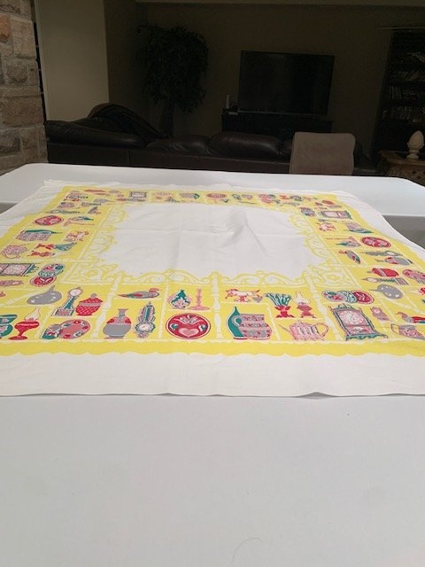 Vintage STARTEX Cotton Table Cloth. Cotton - 52" X 48". Excellent Quality! Good Condition. Stunning yellow floral pattern. Smoke Free - Pet Free Home. Located Richmond Hill - Bathurst and King Rd.
