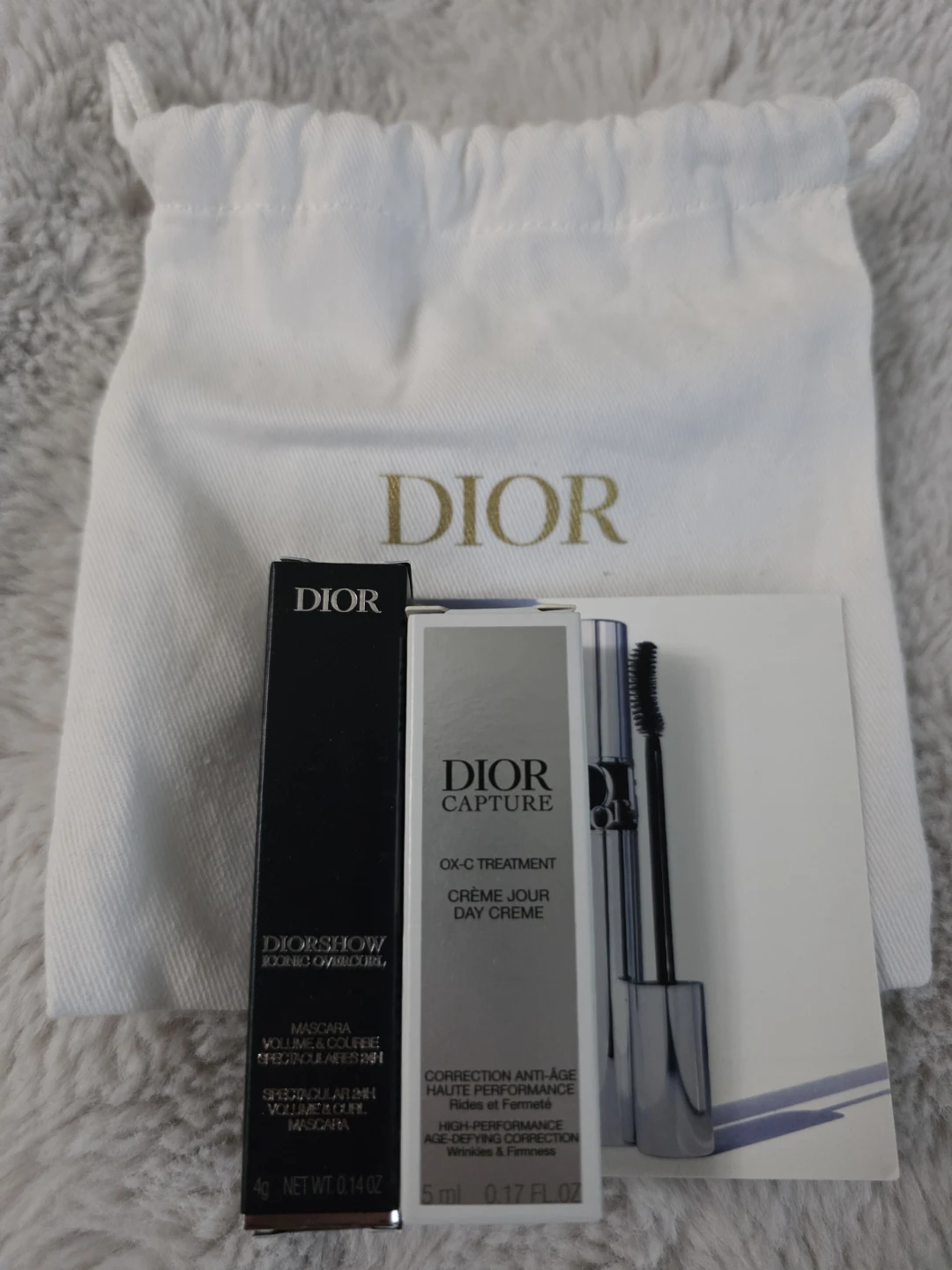 * white drawstring pouch that can be used as a catch all in bags, branded gold logo