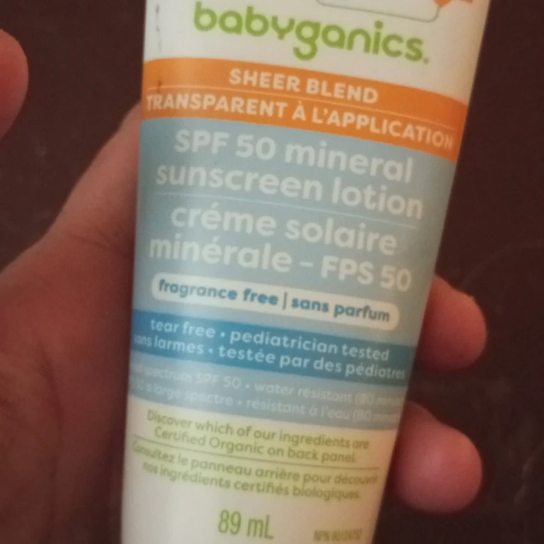 Babyganics Sheer Blend Mineral Sunscreen Lotion with SPF 50.
