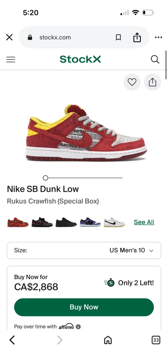 Nike SB Dunk Low "Rukus Crawfish" Men's Size 10