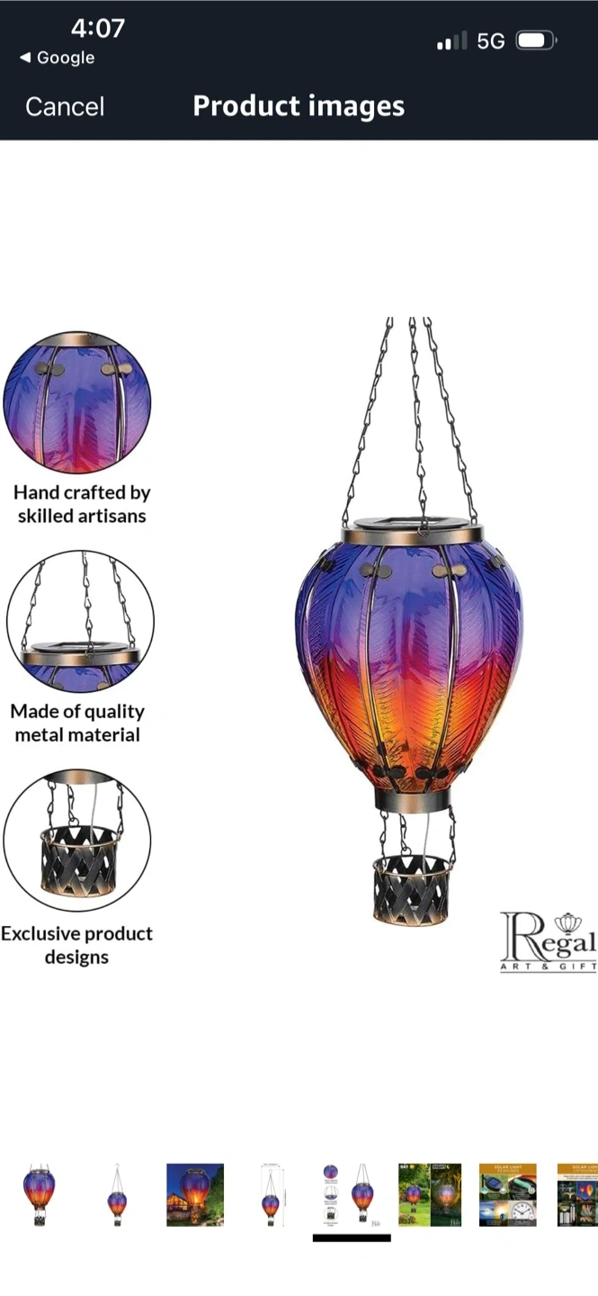 New Regal Art & Gift Hot Air Balloon Solar Lantern