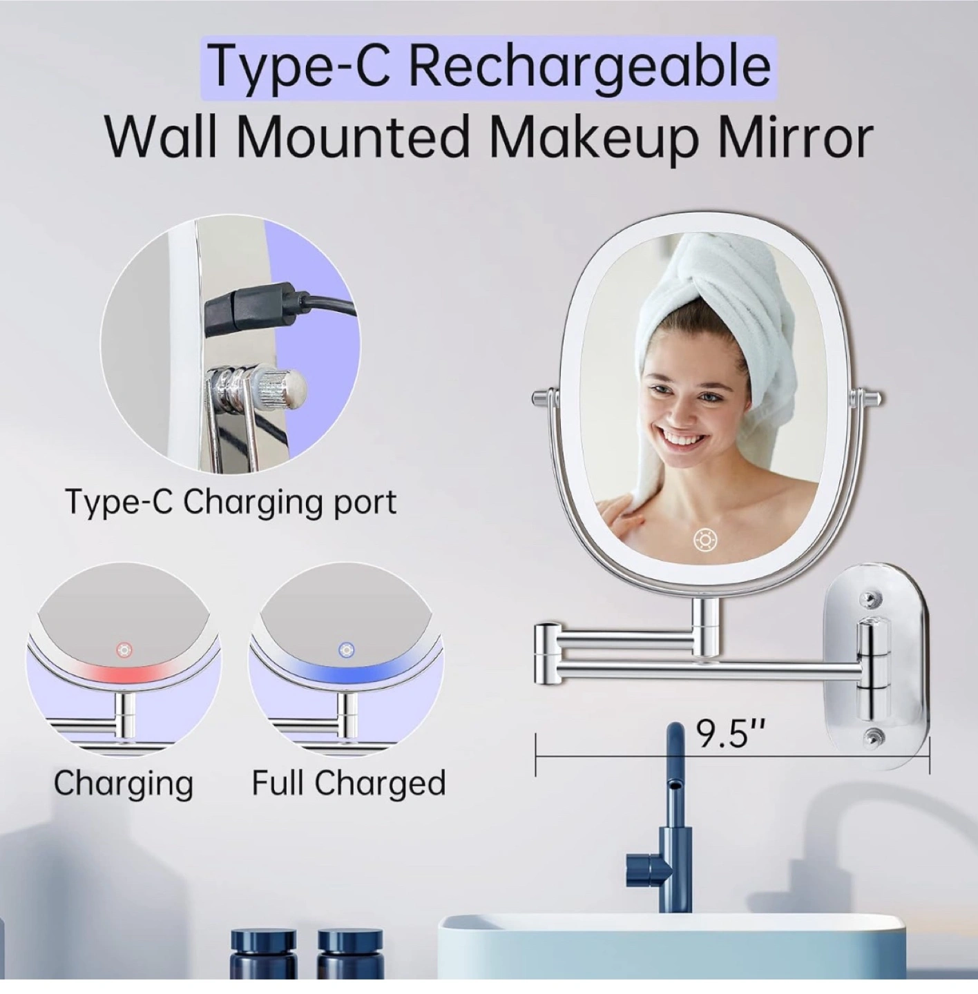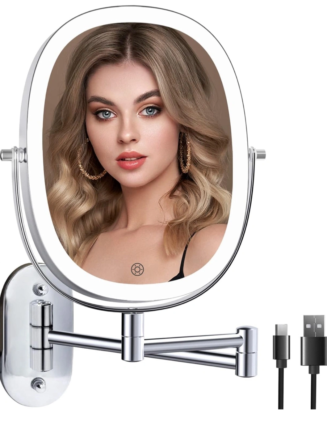Selling a brand new wall-mounted lighted makeup vanity mirror, still in its original box! It features a Type-C rechargeable port and stepless dimming with a touch sensor. The mirror offers 360° rotation, allowing you to adjust and fix it in any position for the best makeup view.