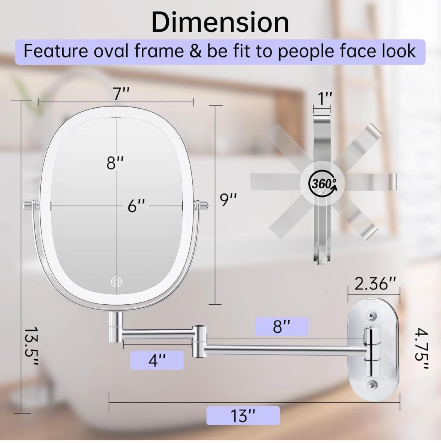 - Mirror: 6" x 8"