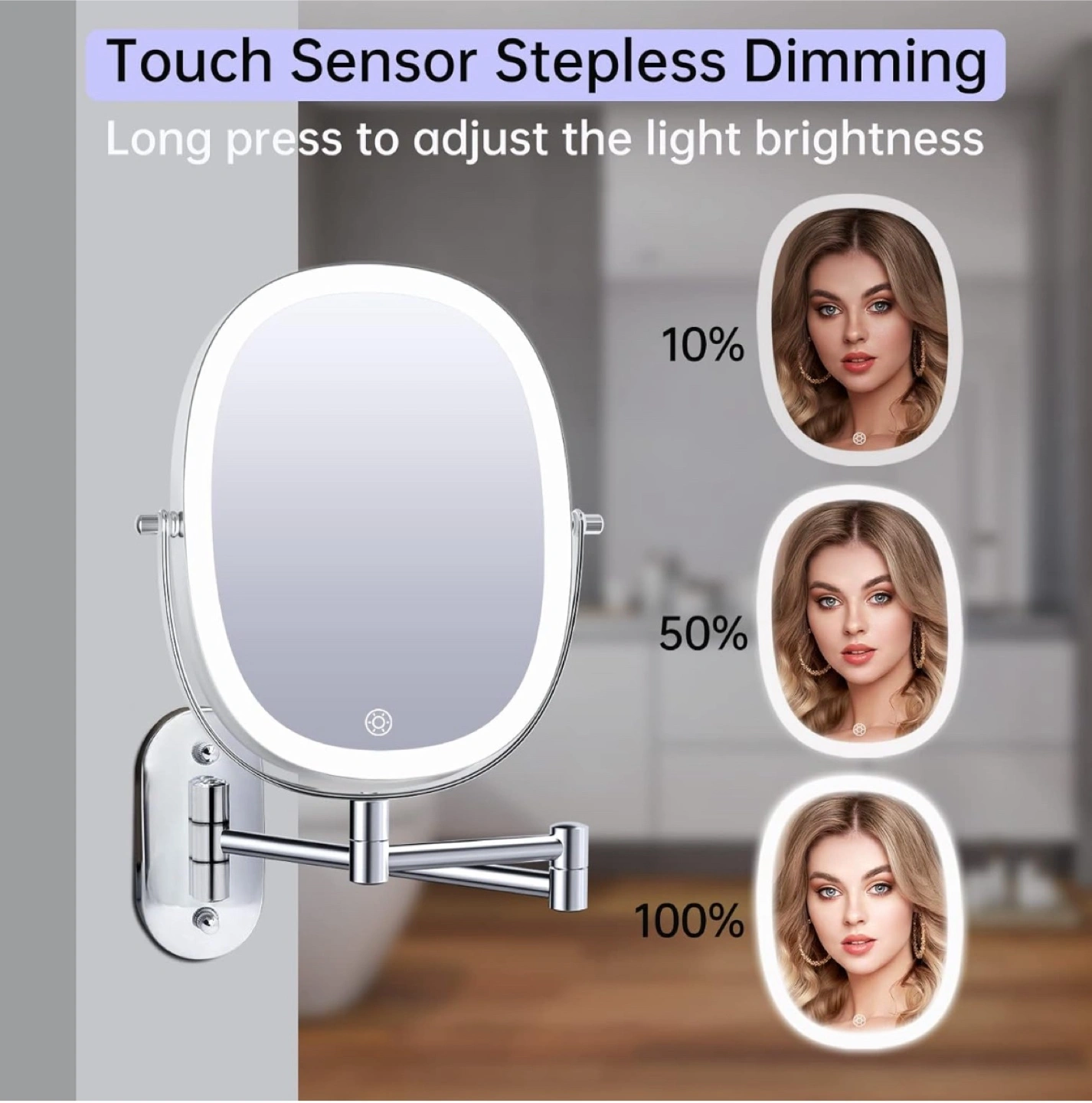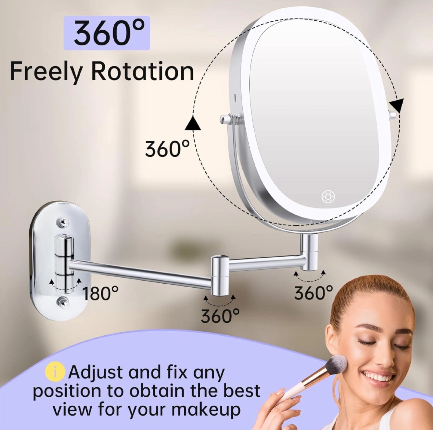 Selling a brand new wall-mounted lighted makeup vanity mirror, still in its original box! It features a Type-C rechargeable port and stepless dimming with a touch sensor. The mirror offers 360° rotation, allowing you to adjust and fix it in any position for the best makeup view.