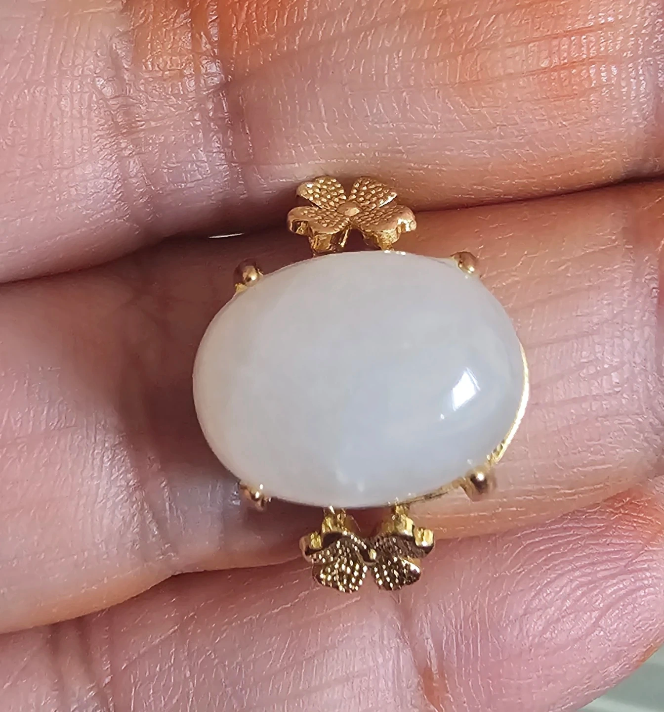 A lovely white jade ring with gold accents. It's in New arrival and ready to wear! It's a great gift idea , jade is large size gem