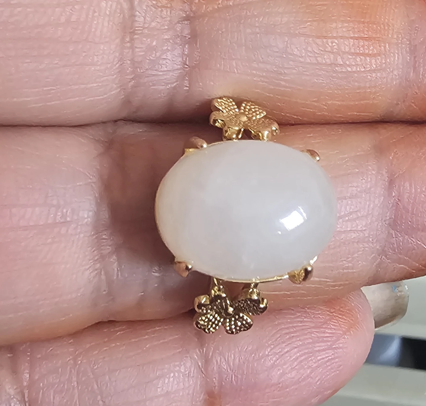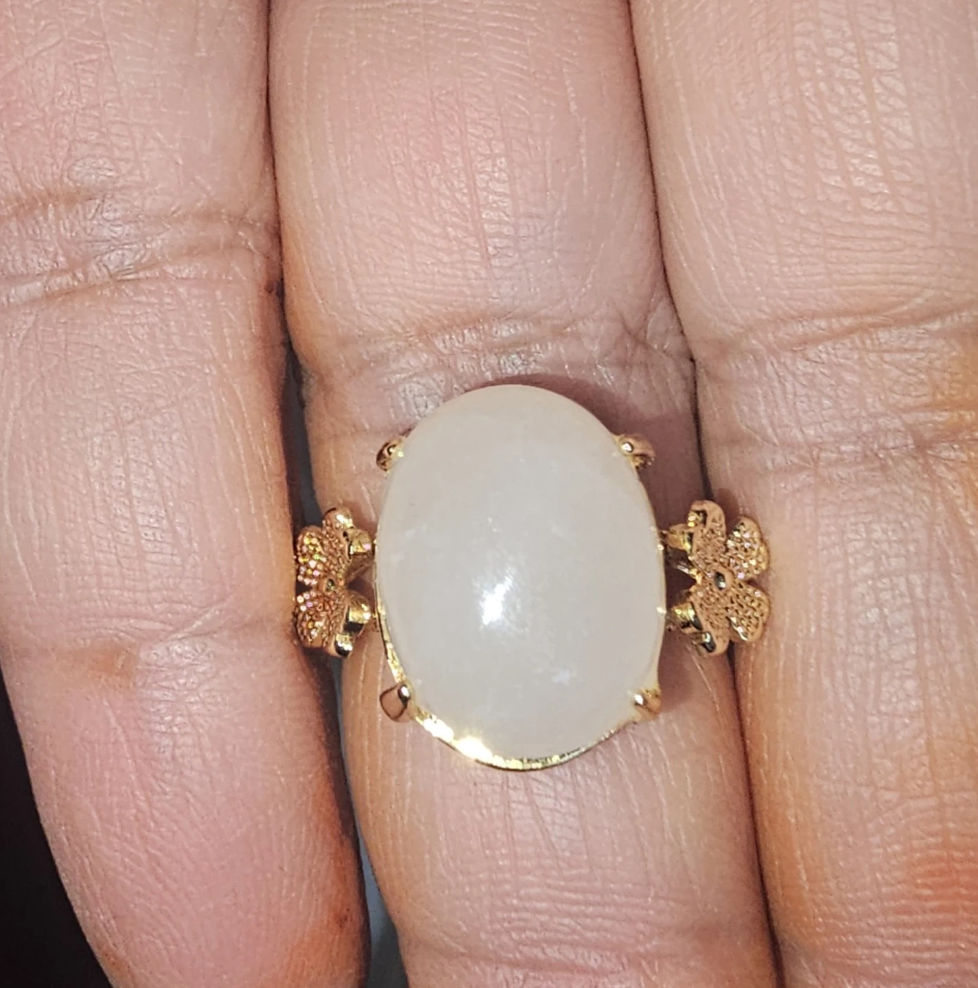 A lovely white jade ring with gold accents. It's in New arrival and ready to wear! It's a great gift idea , jade is large size gem