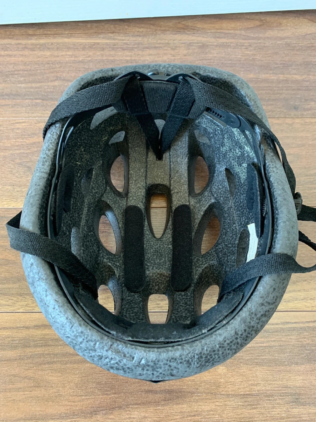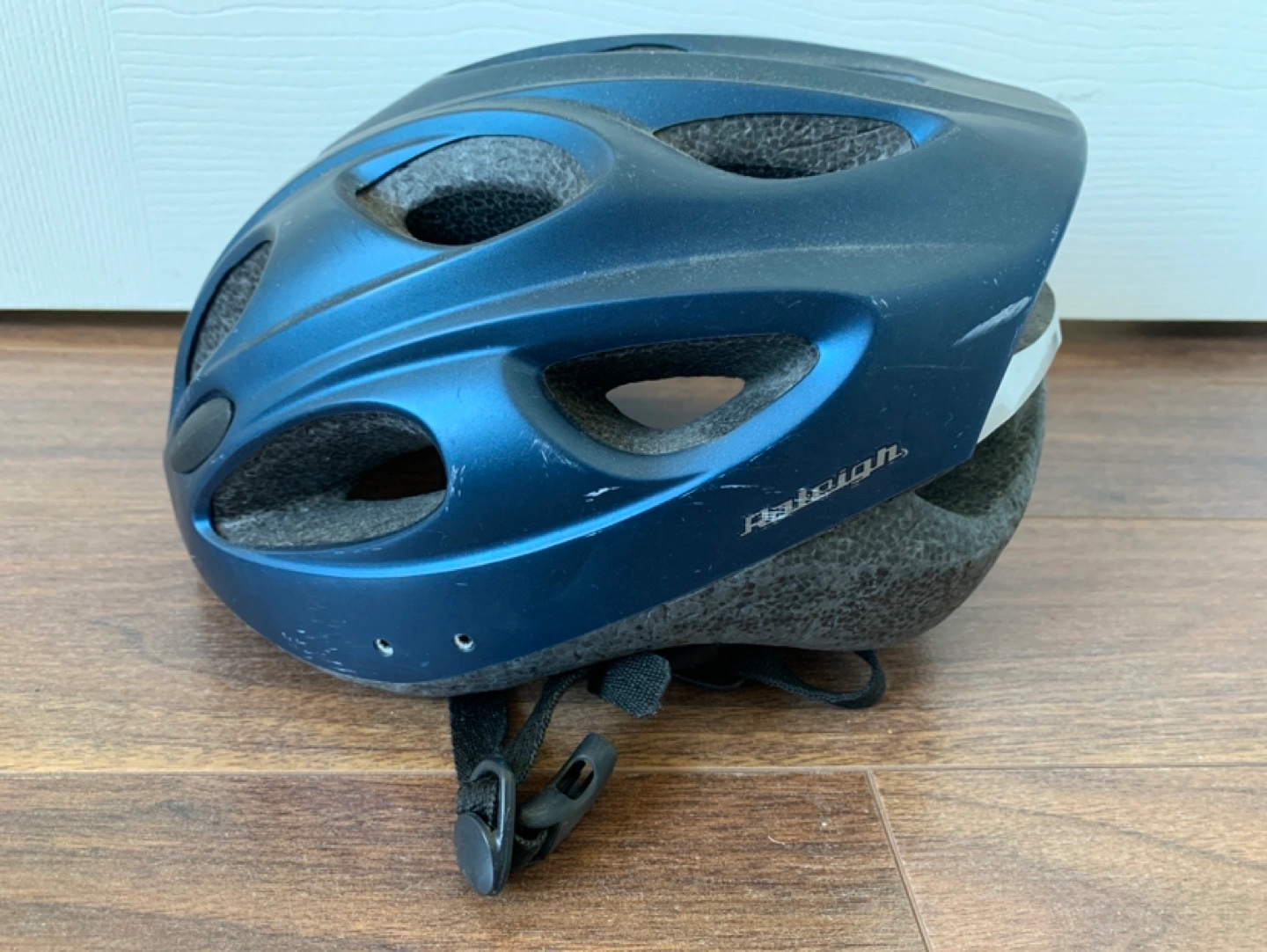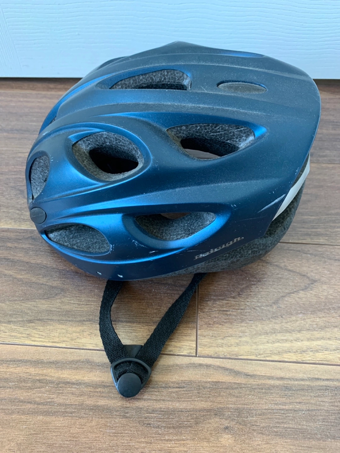 Adult bike helmet in blue. Adjustable straps.