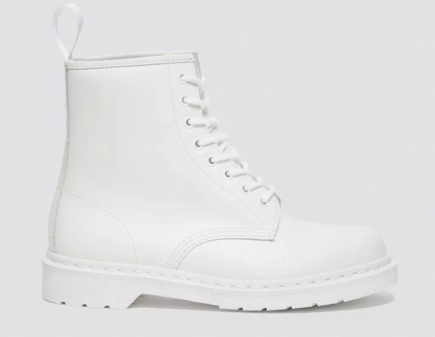 Dr. Martens 1460 Mono Smooth boots in white. These classic boots feature a durable construction and a comfortable fit. They come in a size UK 8 / US 9.