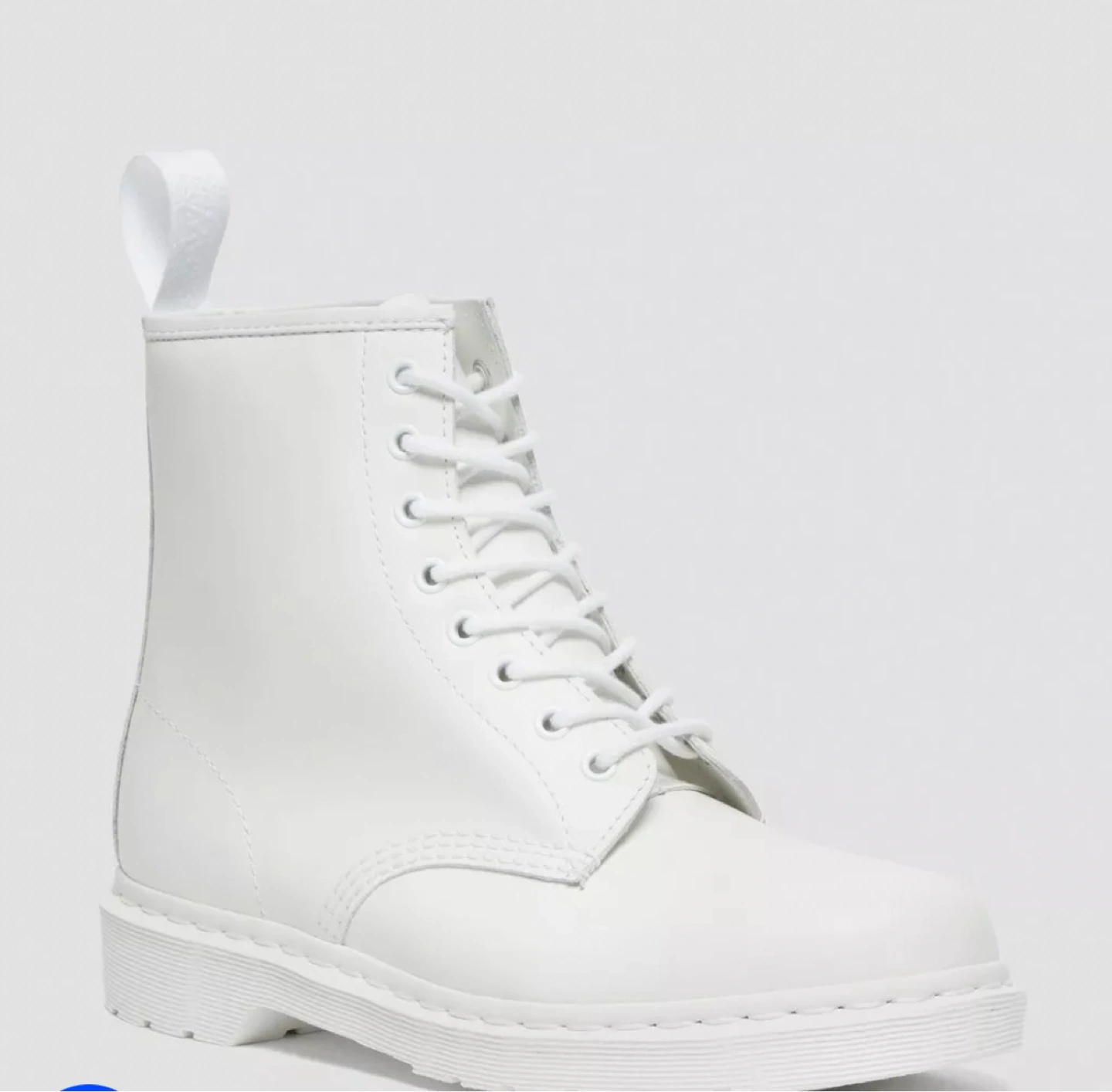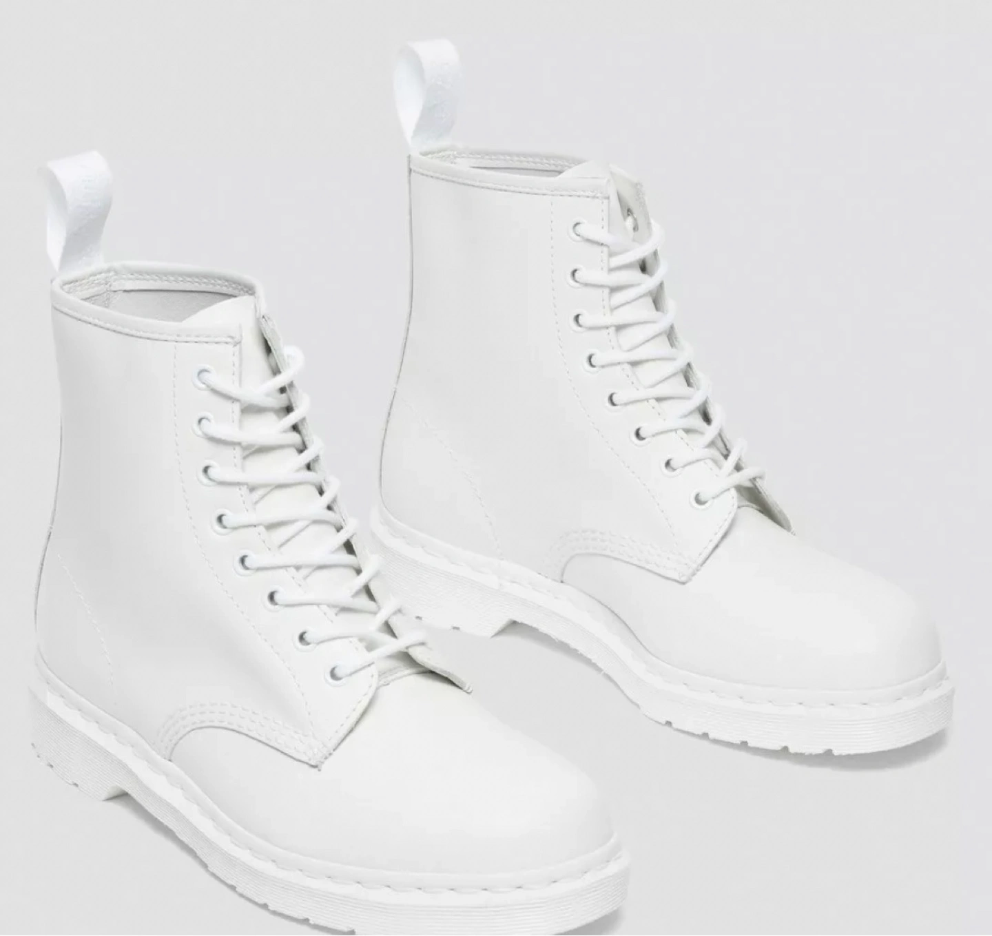 Dr. Martens 1460 Mono Smooth boots in white. These classic boots feature a durable construction and a comfortable fit. They come in a size UK 8 / US 9.