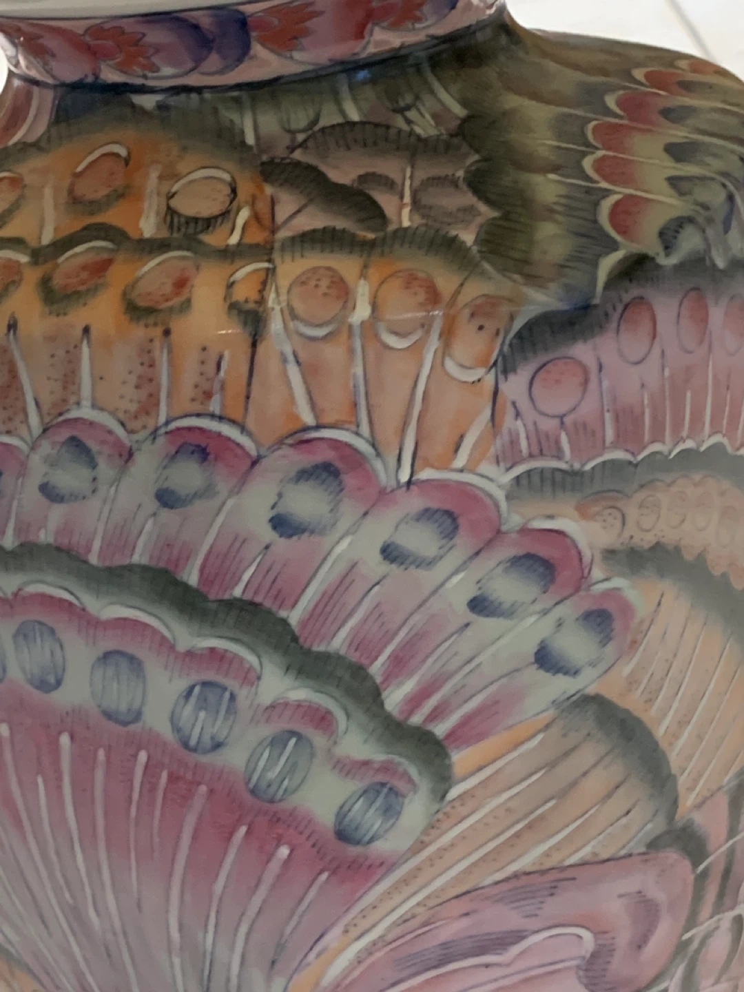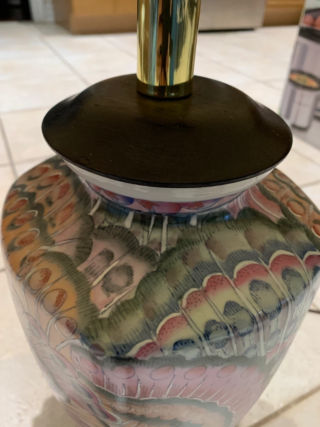 Add timeless elegance and a pop of color to your space with this stunning vintage Famille Rose porcelain table lamp. With a vibrant peacock feather motif, this piece blends classic Asian artistry with a warm Southwestern flair.