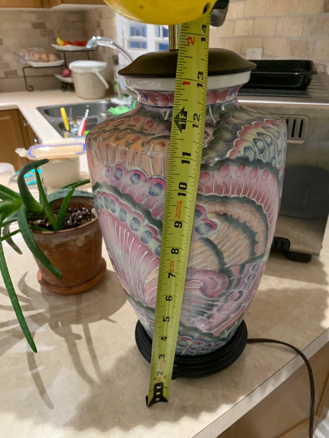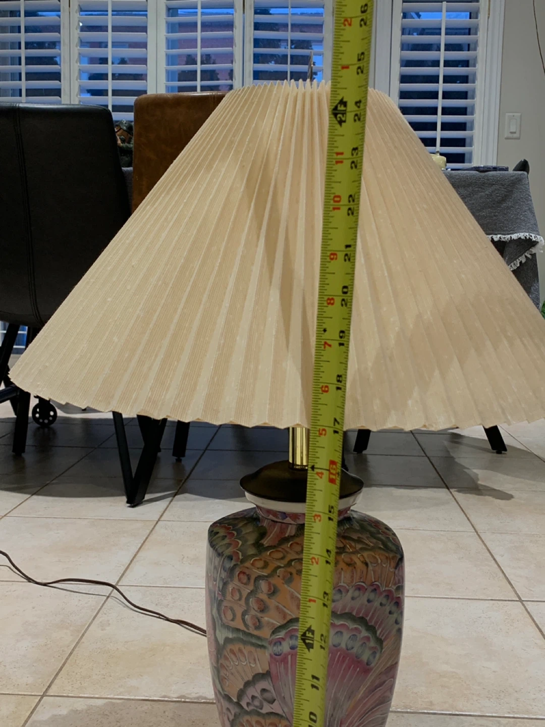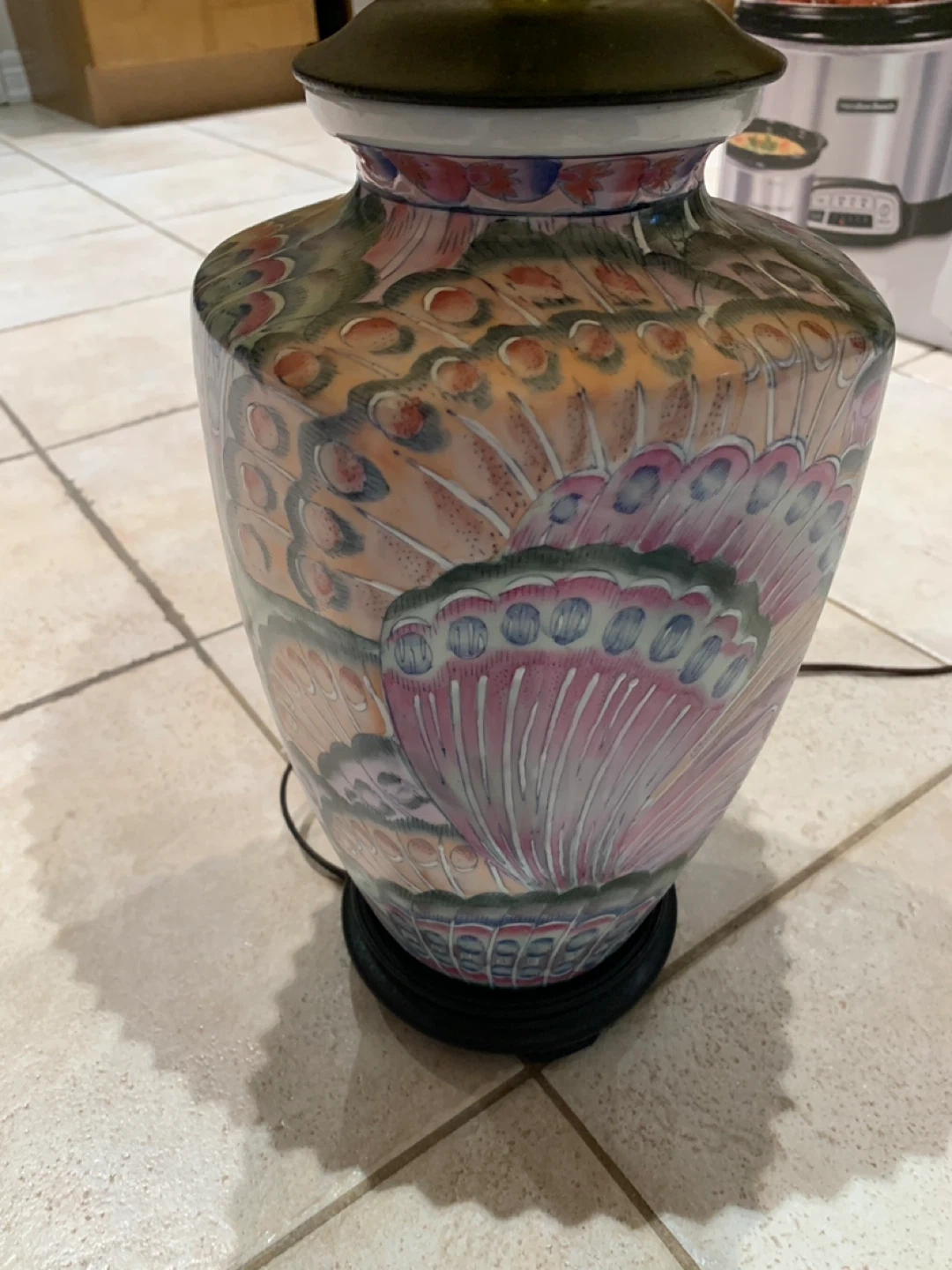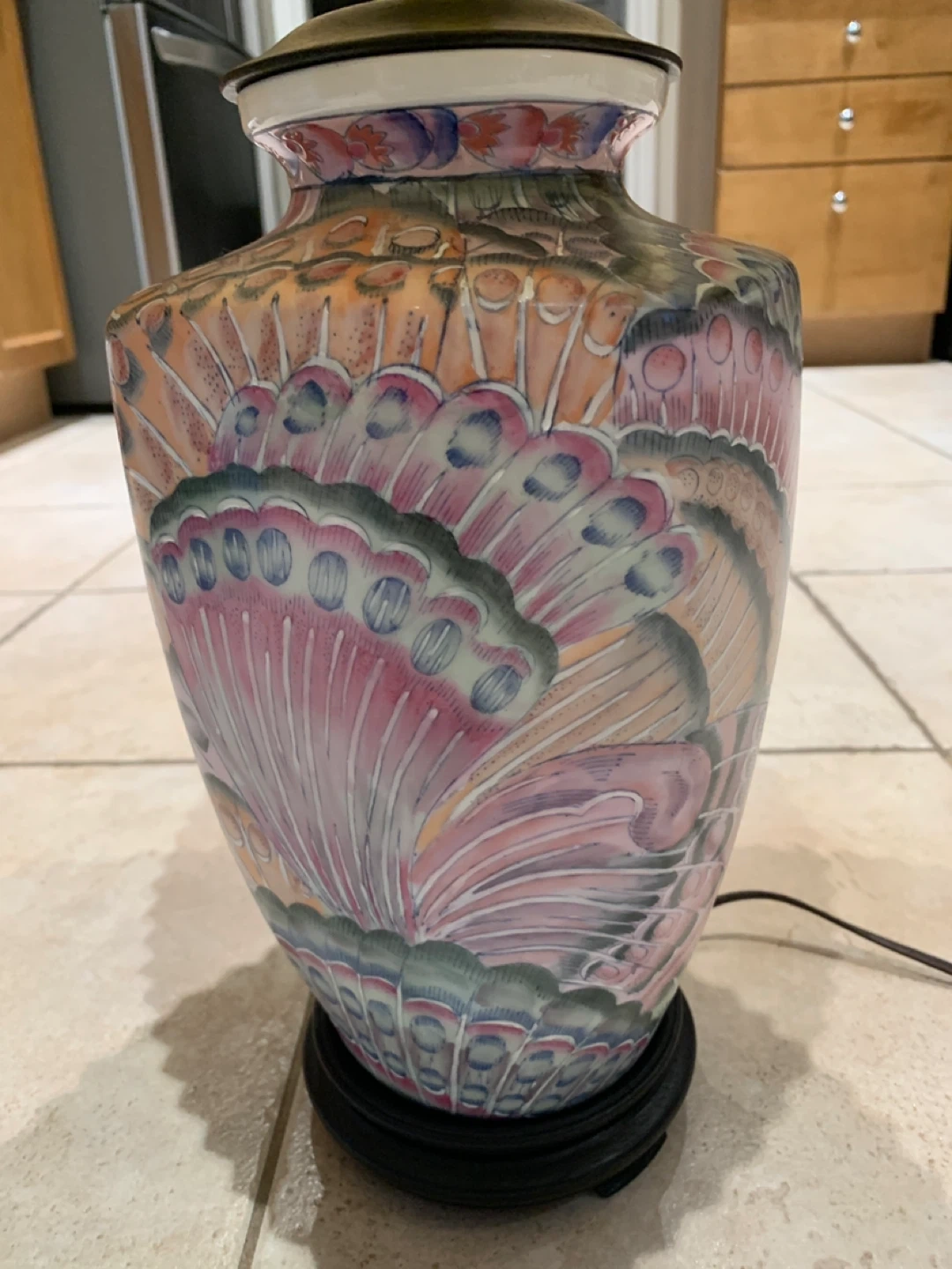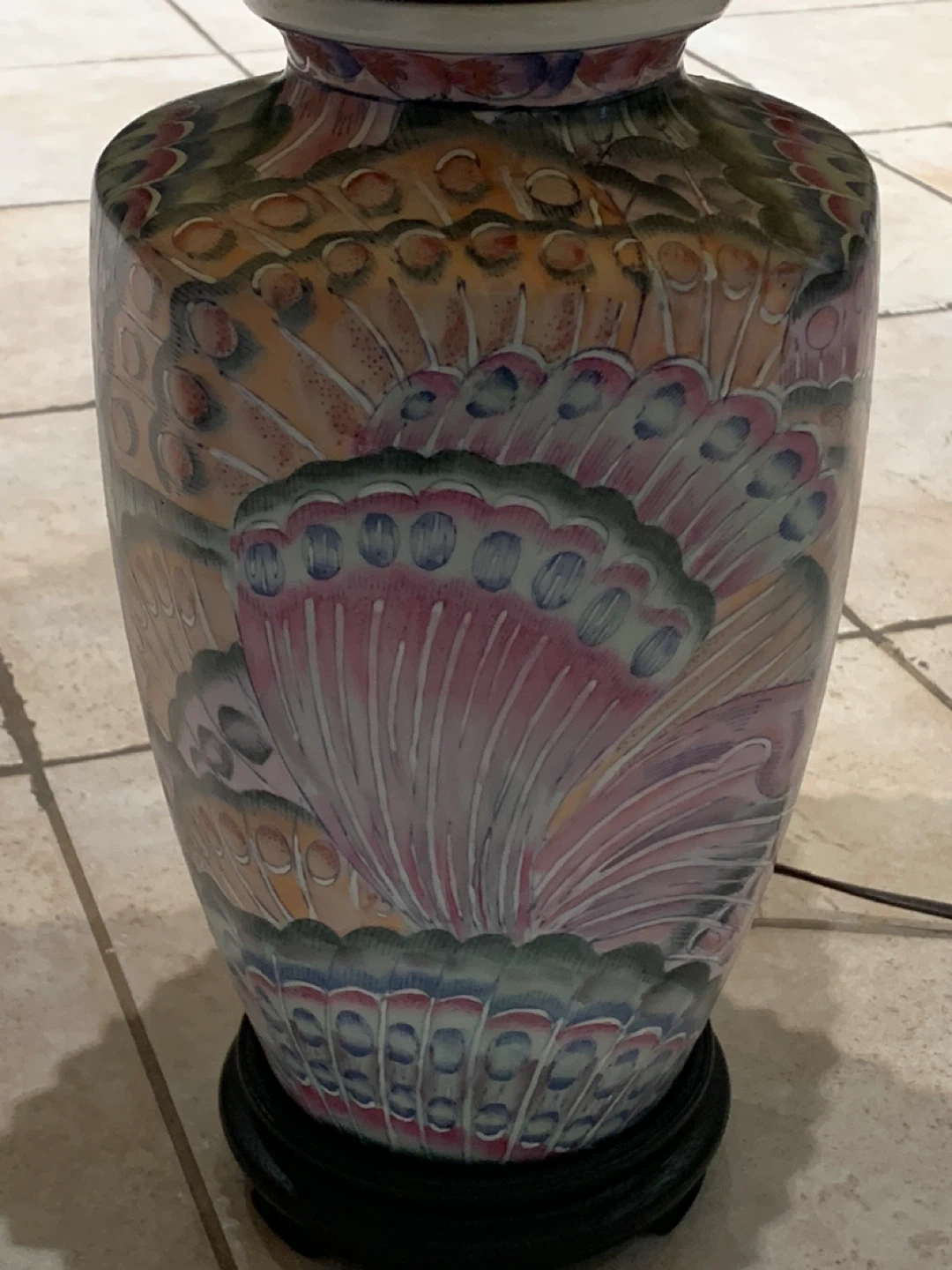 Add timeless elegance and a pop of color to your space with this stunning vintage Famille Rose porcelain table lamp. With a vibrant peacock feather motif, this piece blends classic Asian artistry with a warm Southwestern flair.