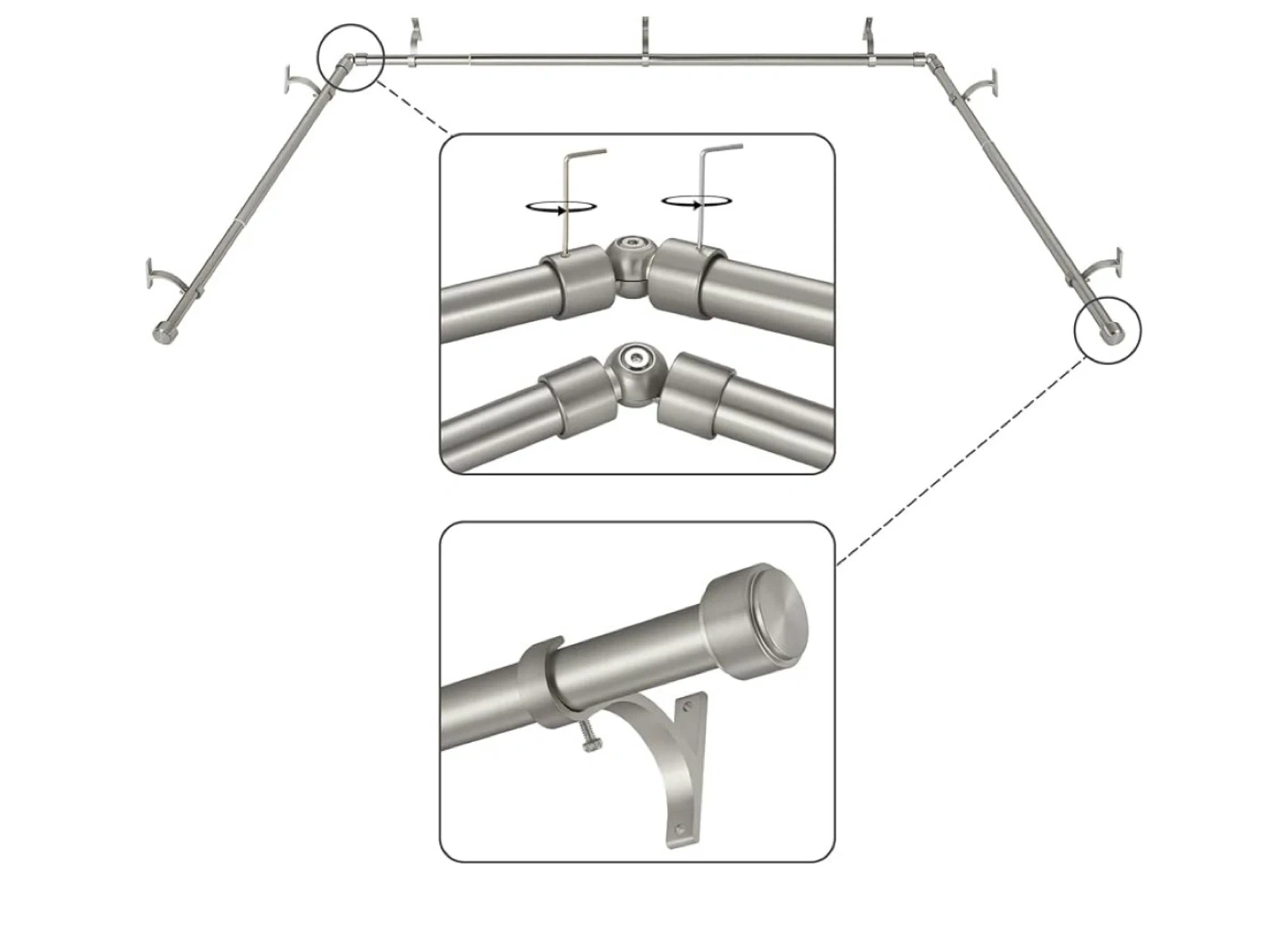 Mayrhyme Brushed Nickel Bay Window Curtain Rods