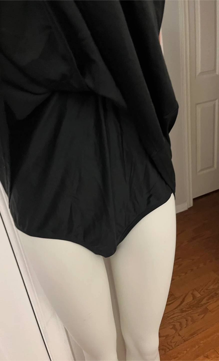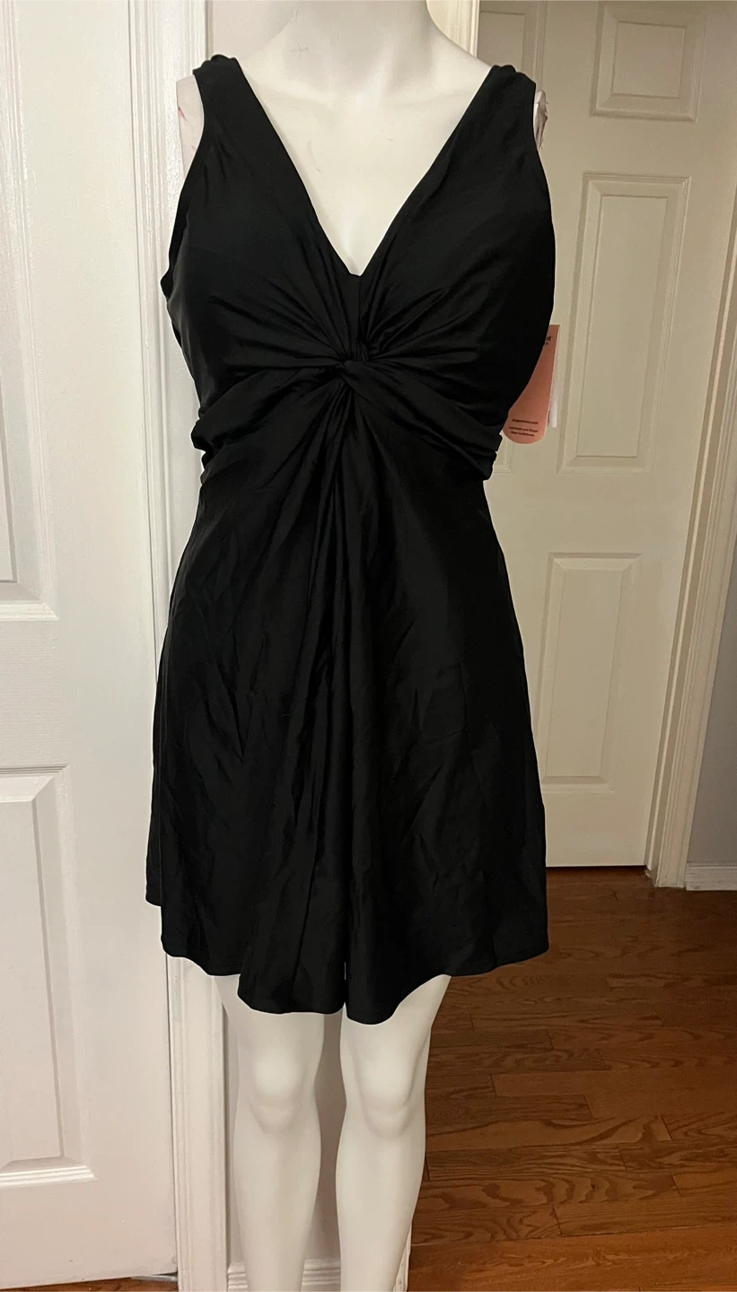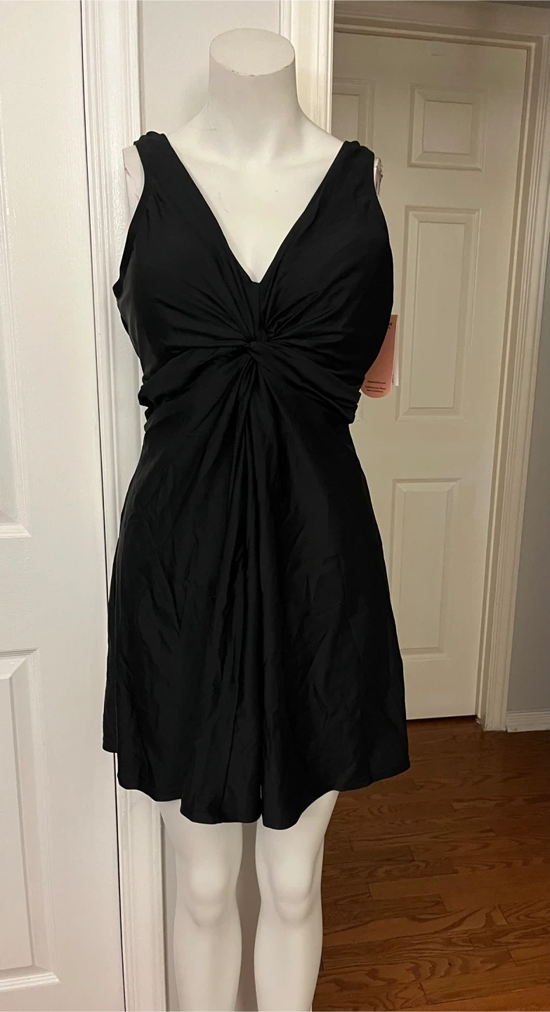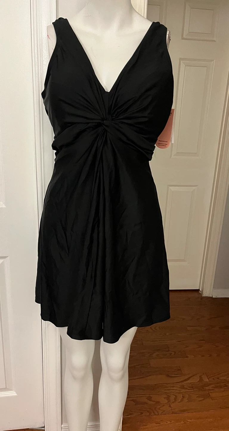 This Shapermint Essentials knot-front swim dress comes in black and size 3XL one piece It's made of 82% polyamide and 18% elastane for the shell, with a lining of 88% polyester and 12% elastane. Machine wash cold, use only non-chlorine bleach if needed, and tumble dry low. It's designed in the USA and made in China.