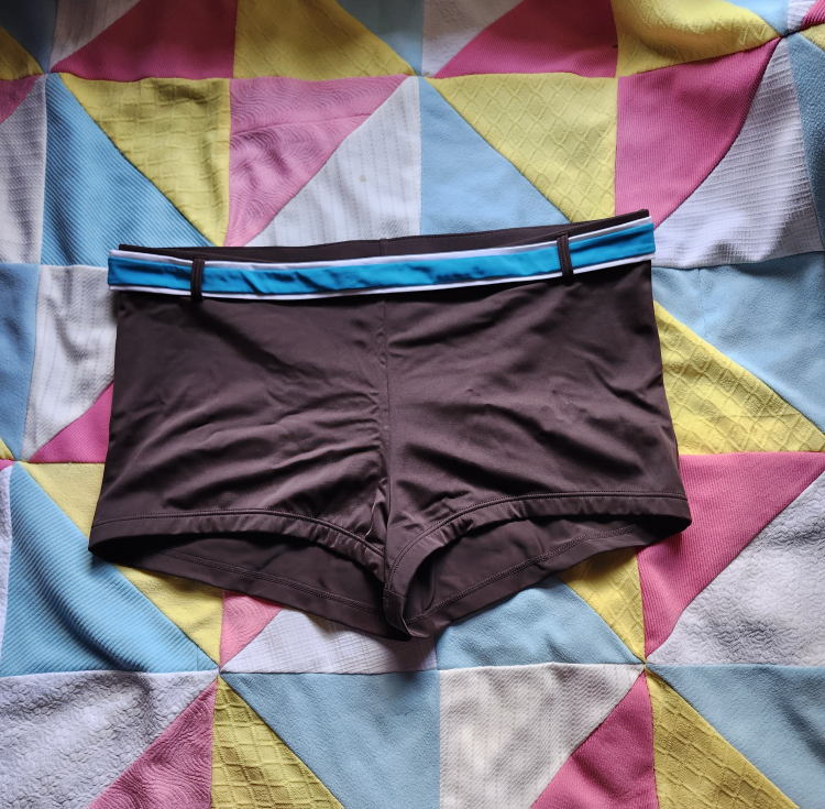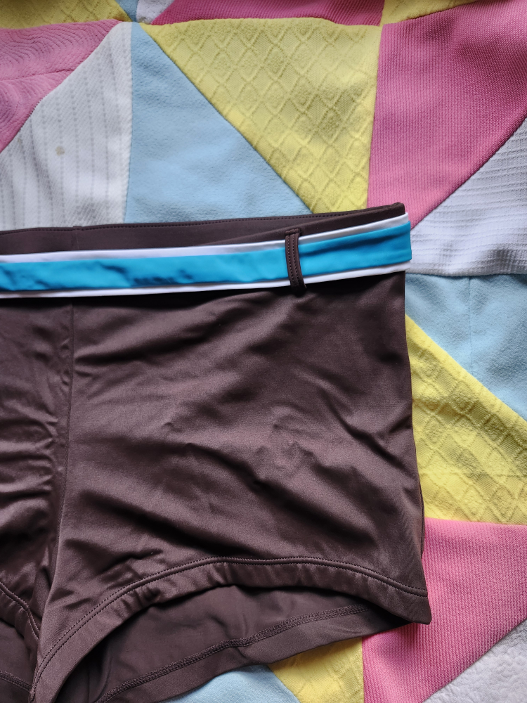 aborable y2k brown boyshort cut swim bottoms. the belt part sadly doesn't go all the way around, it is just a piece at the front