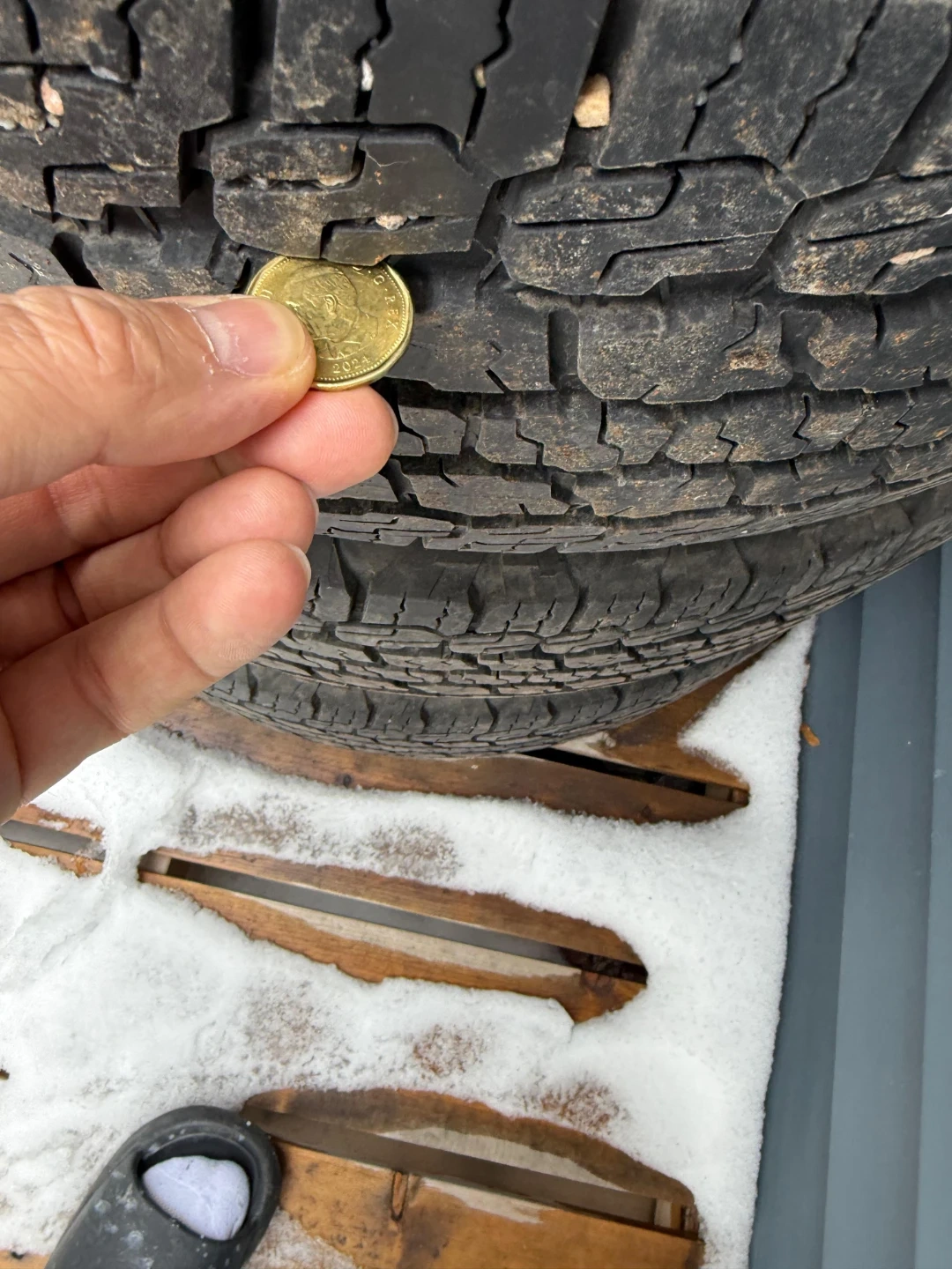 Four used tires for sale. Tread depth is comparable to a Canadian quarter. Great for off-season use or a project vehicle. All tires are black.