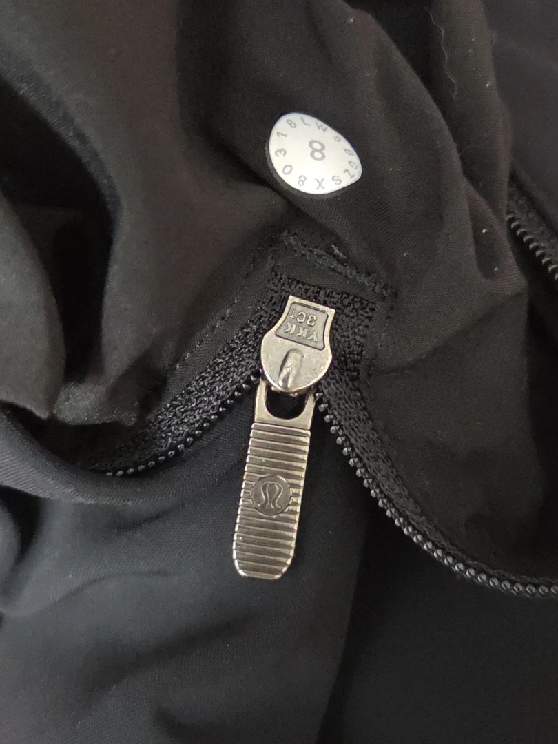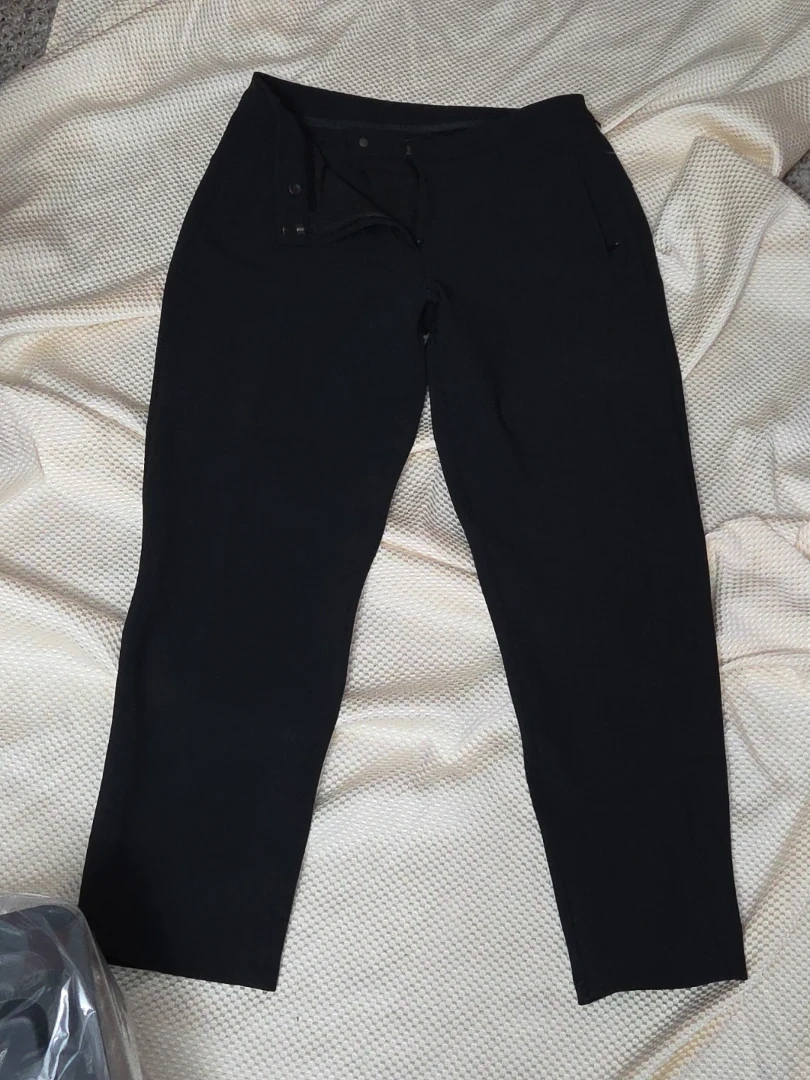 Selling a pair of Lululemon black pants in size 8. They are in great condition and ready for a new owner! The pants feature a YKK zipper, side pockets, reflective material at bottom of each pantleg-see photo.