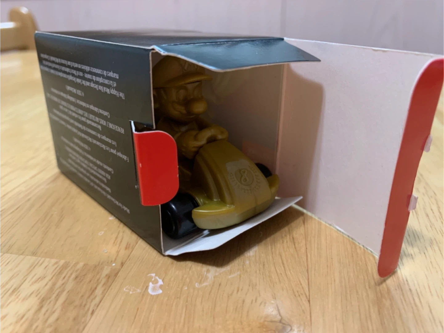 a McDonald's Mario Kart racer toy. It's the golden Mario in his kart! Comes with the original box