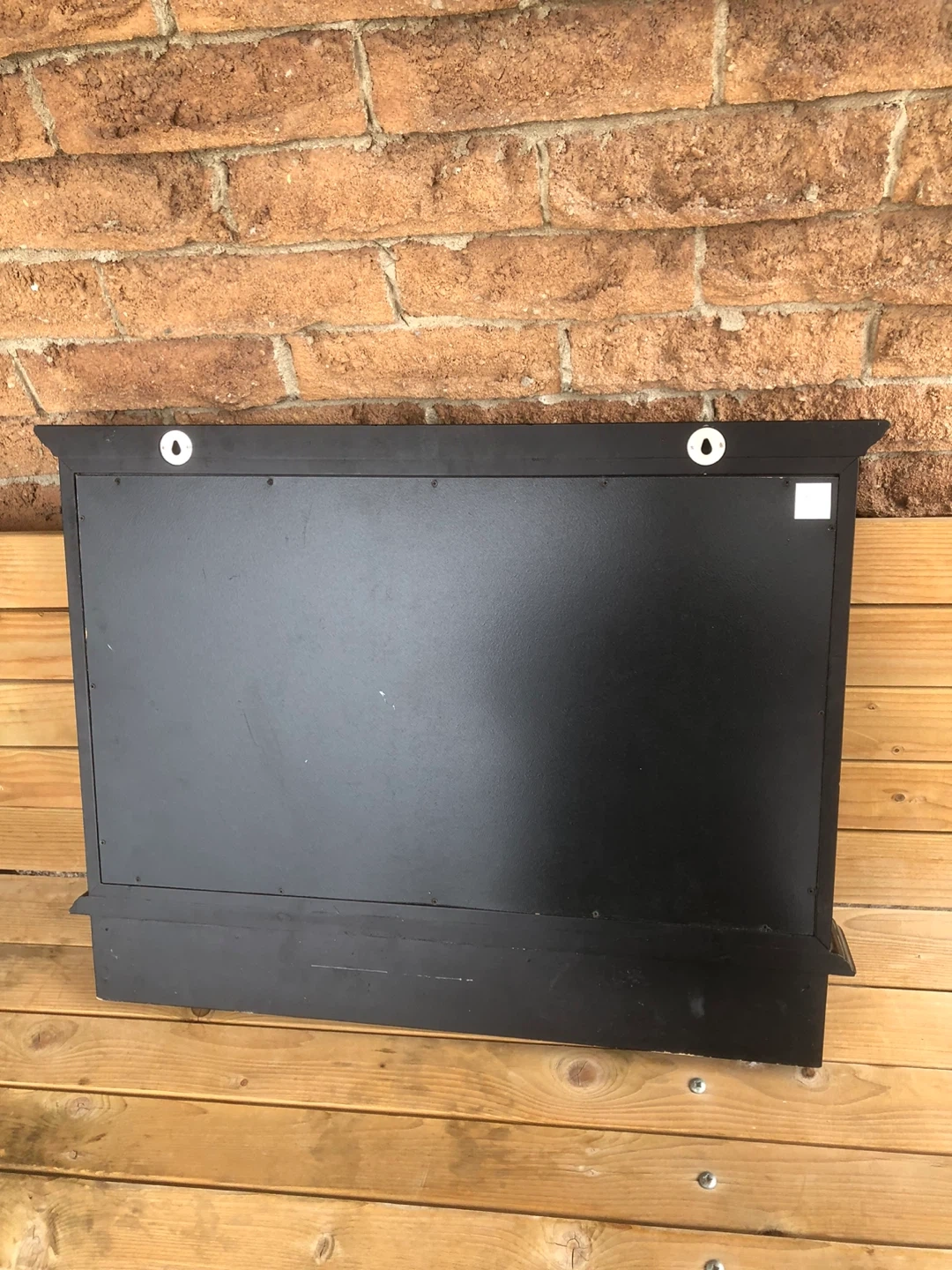 Selling a black framed whiteboard that also has hooks! It's in good condition and ready for a new home. Originally bought for $59.99. All sales are final.