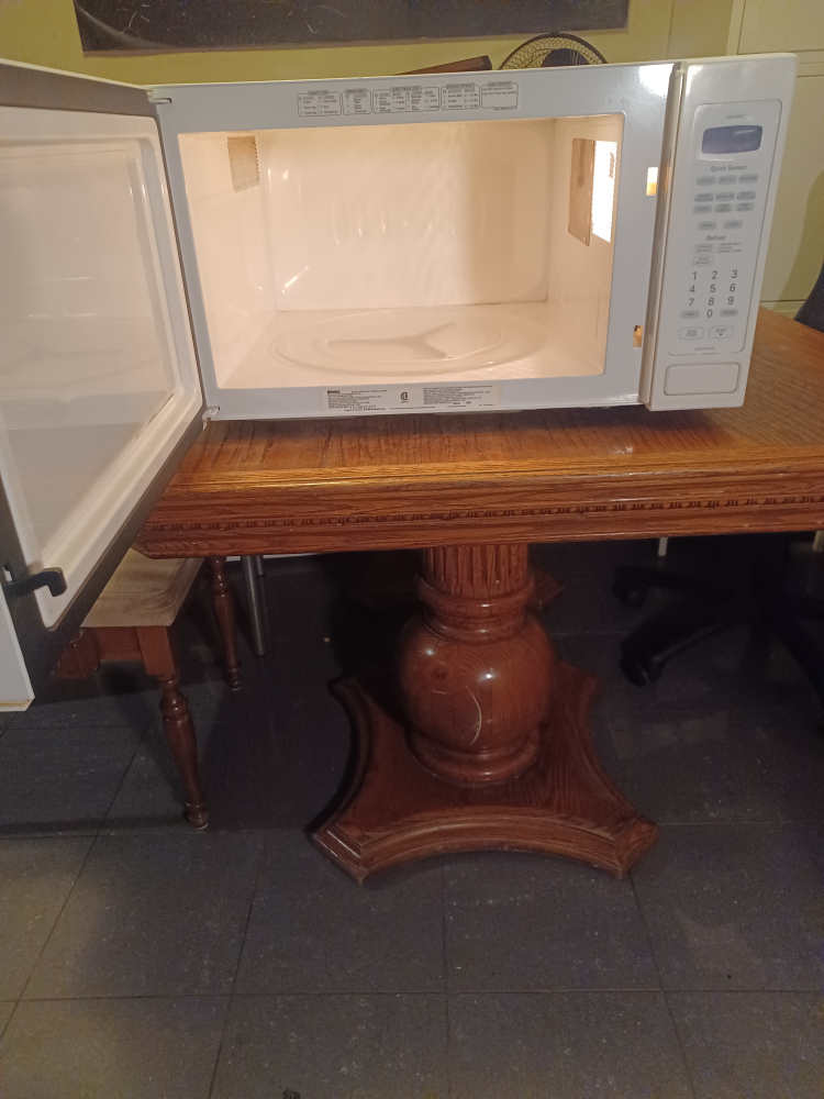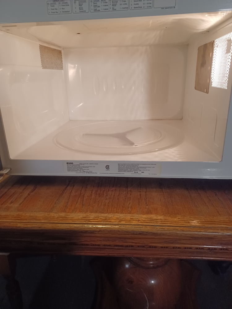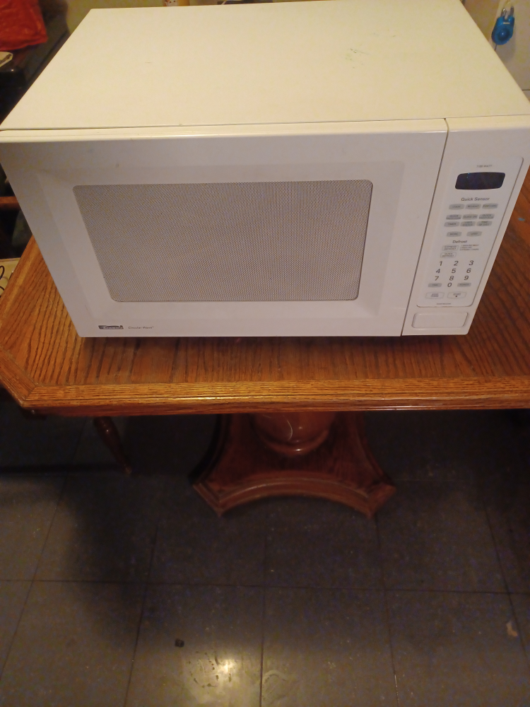 Selling a Kenmore countertop microwave in white. It's in good working condition and ready for a new home! It features a quick sensor and number pad for easy use
