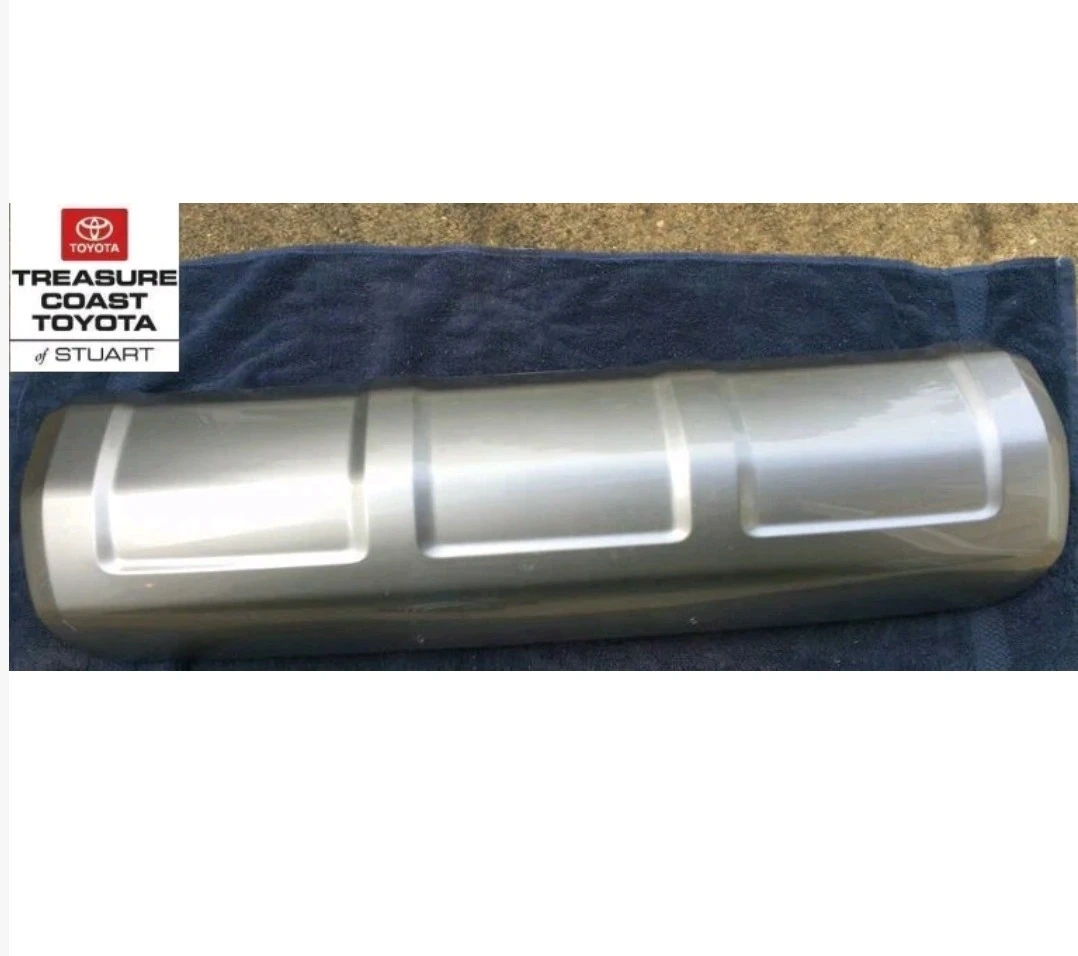 This is a front bumper skid plate for a Toyota 4Runner. It's a silver-coloured, metallic-looking component. It attaches to the underside of the front bumper. This part helps protect the vehicle's undercarriage.