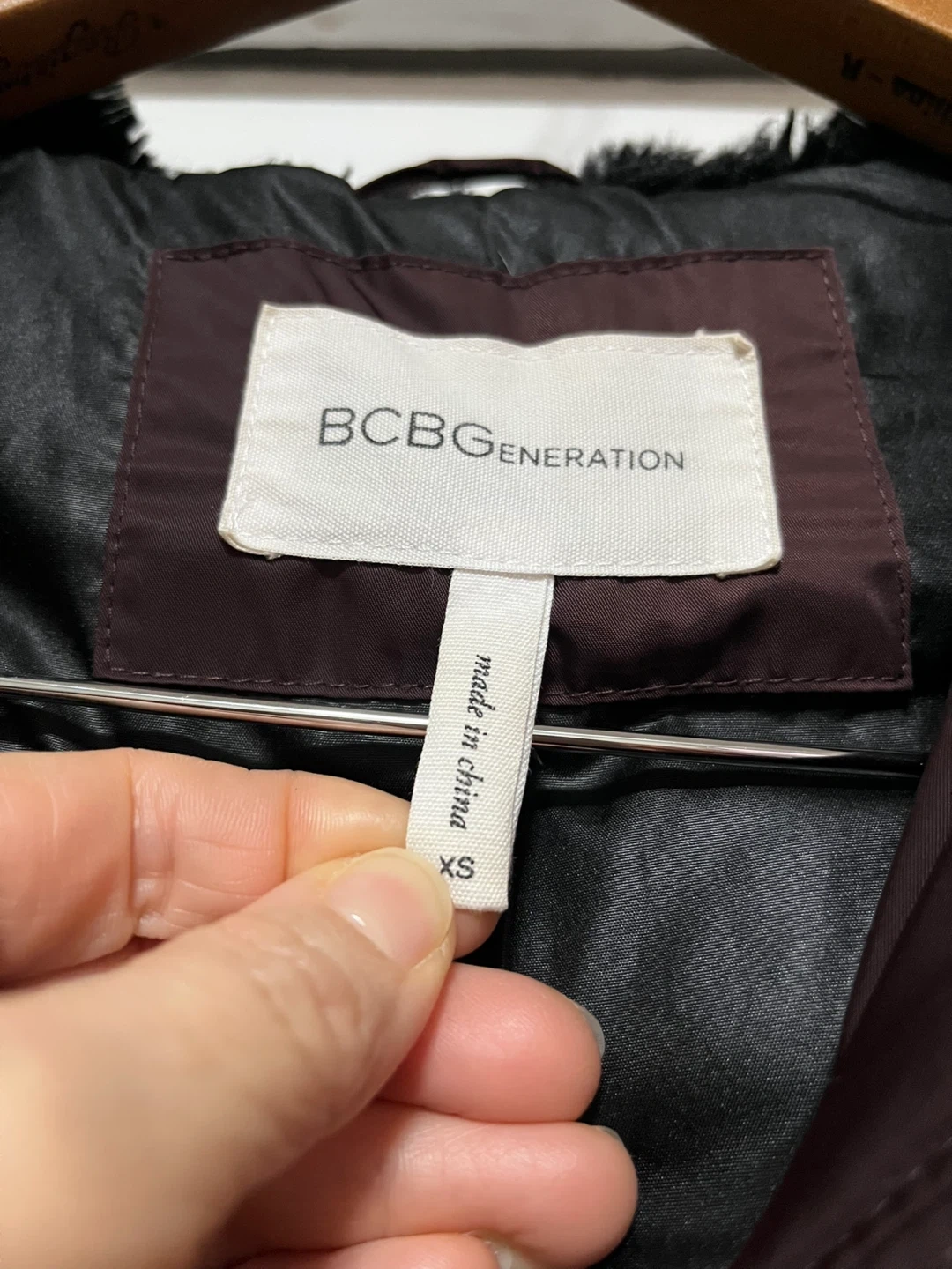 This is a BCBGeneration puffer jacket in size XS. It's a stylish and warm jacket, perfect for colder weather.