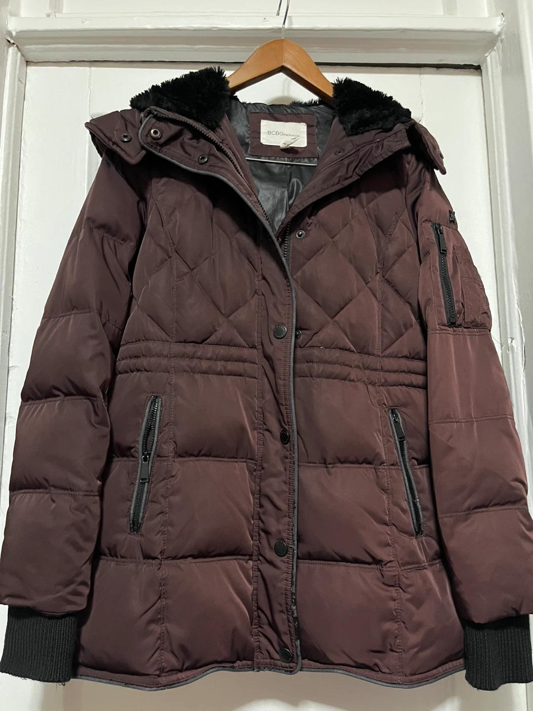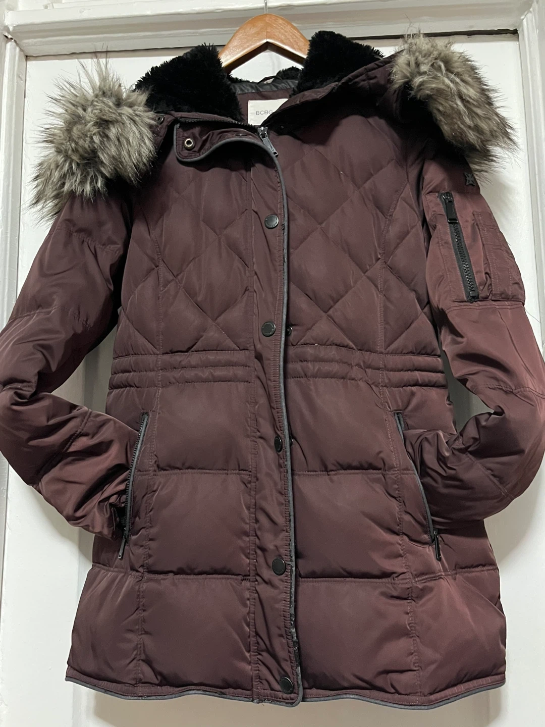 This is a BCBGeneration puffer jacket in size XS. It's a stylish and warm jacket, perfect for colder weather.