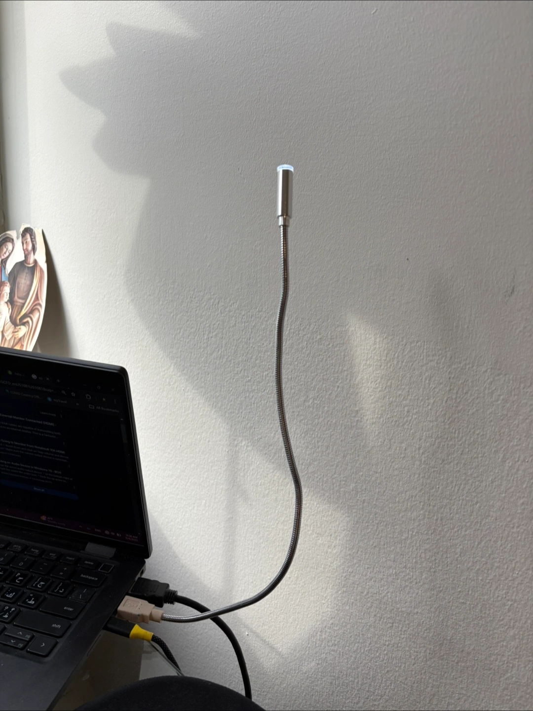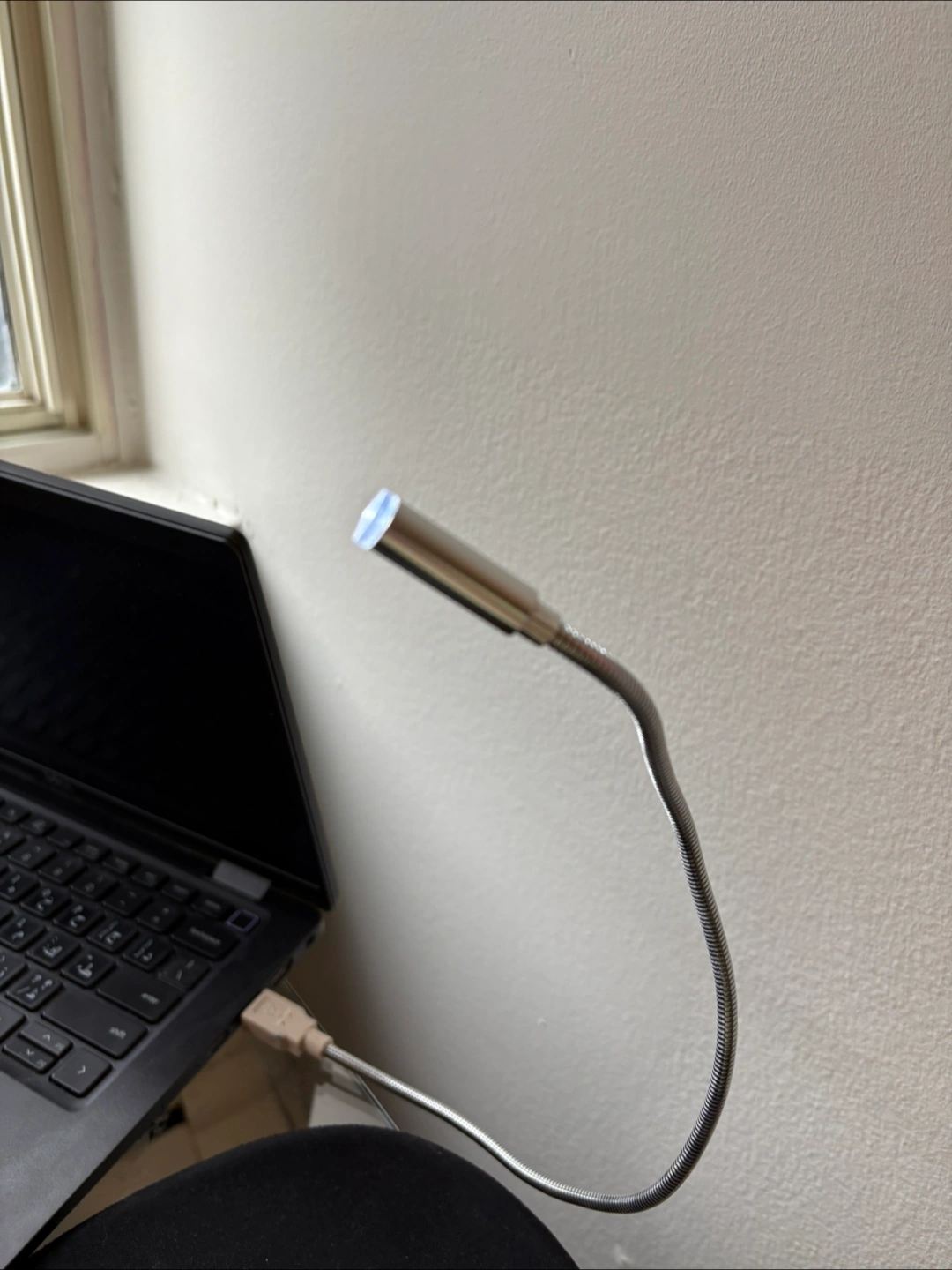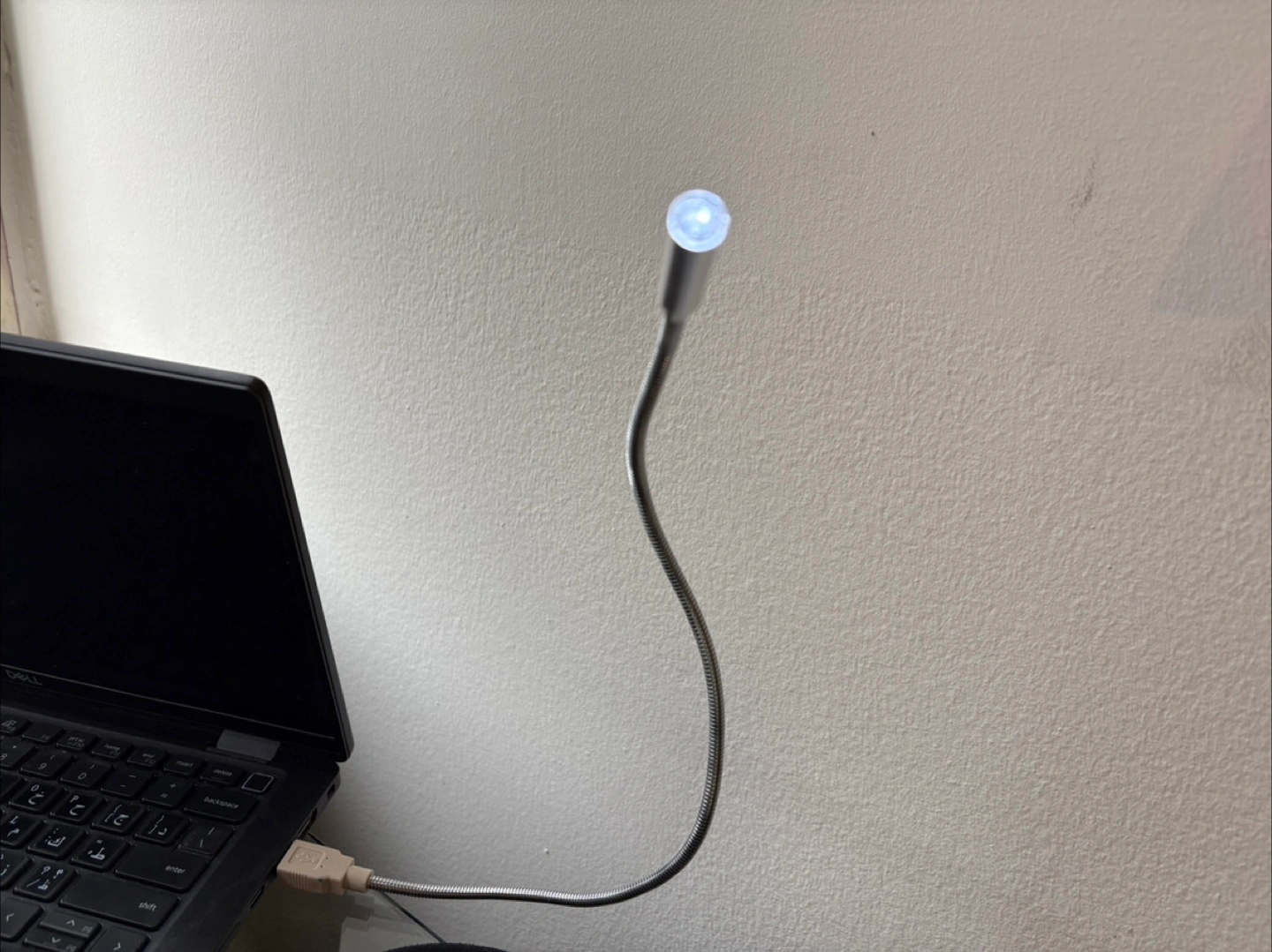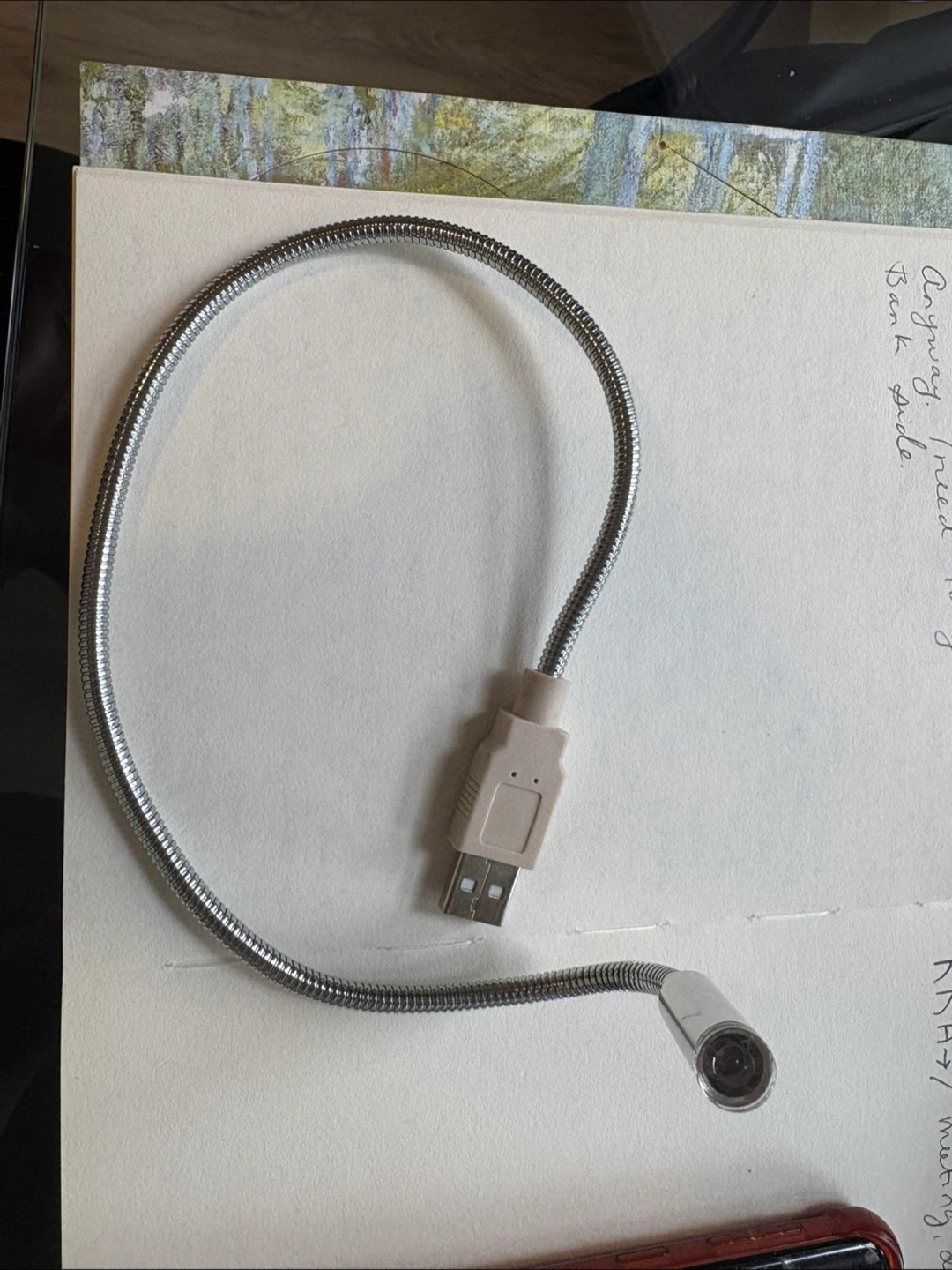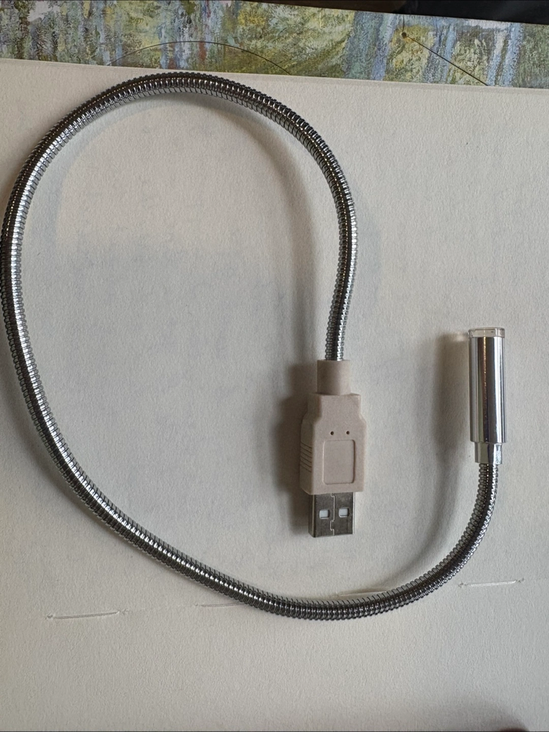 Portable LED desk lamp. Flexible gooseneck design. USB powered. Great for reading or working.