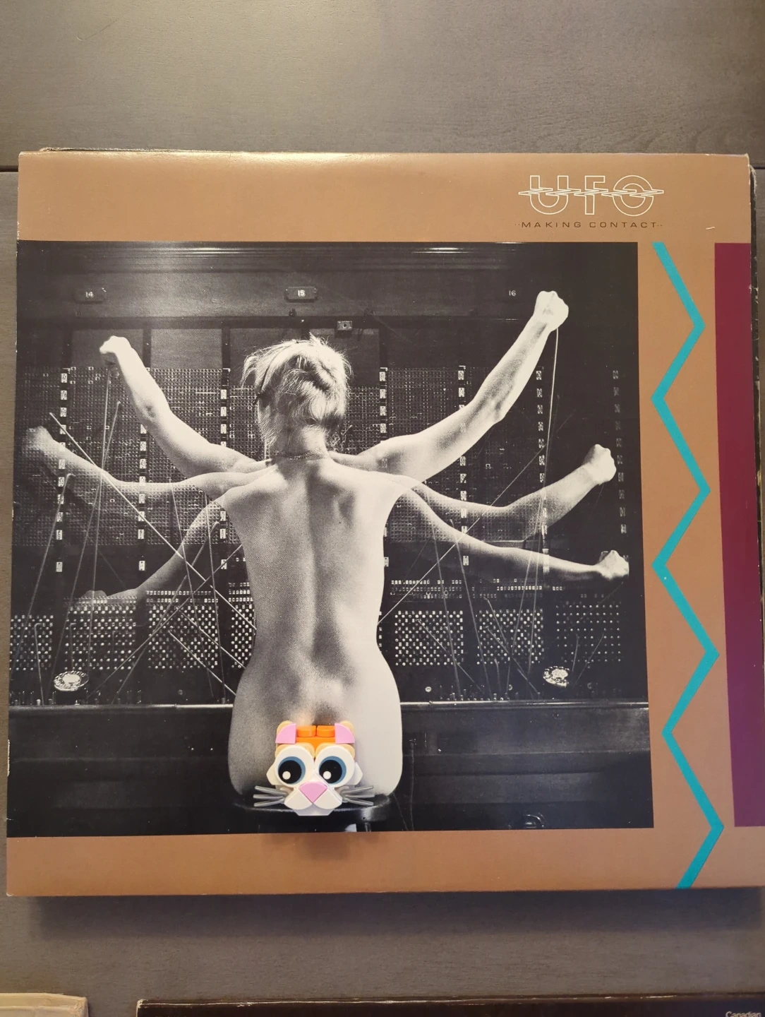 This is the UFO Making Contact vinyl record. It features tracks like 'Blinded by a Lie' and 'When It's Time to Rock'. The album was produced and engineered by Mick Glossop.