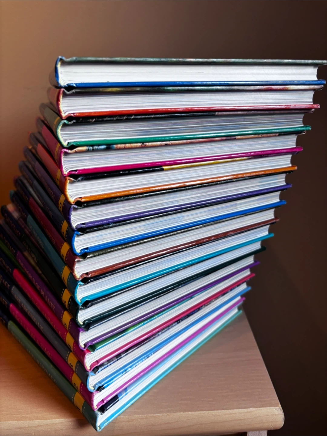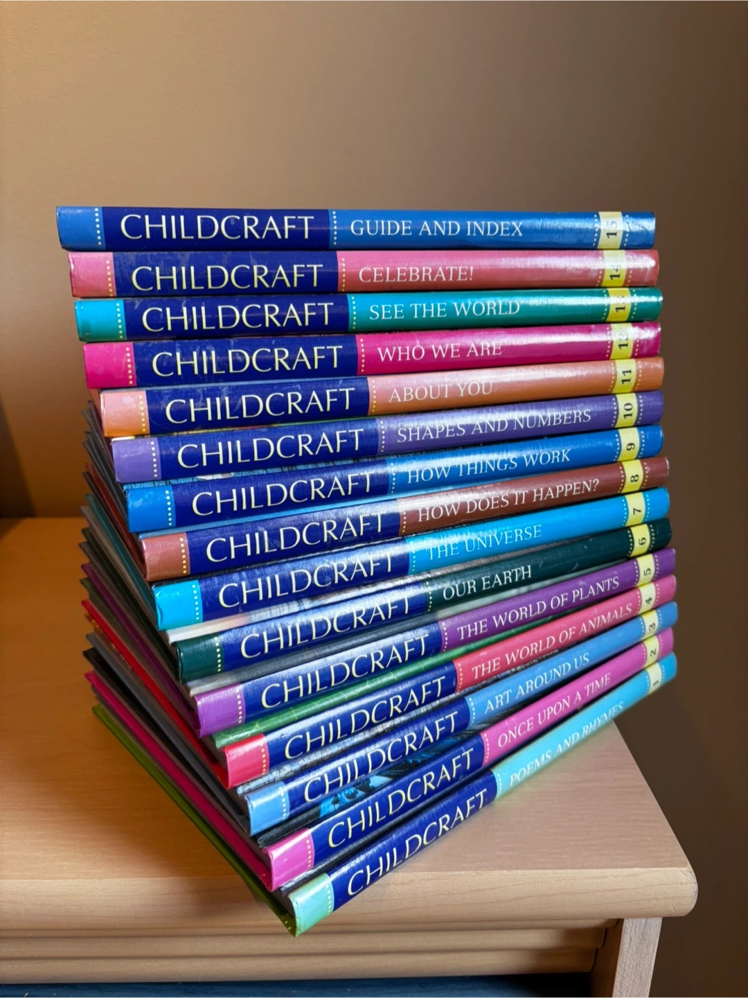 A collection of 15 World Book's Childcraft encyclopedias. Topics cover a wide range, including 'Once Upon a Time', 'The World of Animals', 'Our Earth', and 'The Universe'. This set's colourful spines add a nice touch to any bookshelf. Perfect for young learners!
