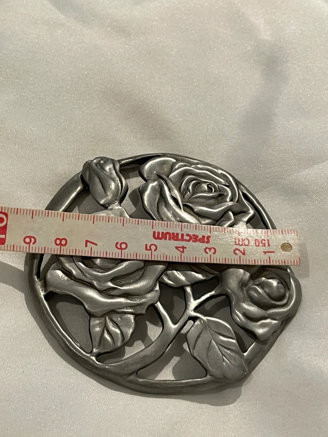 Selling a lovely Manella Fine Pewter trivet featuring a beautiful rose design. It measures approximately 15cm in diameter. A charming addition to any kitchen or dining space!