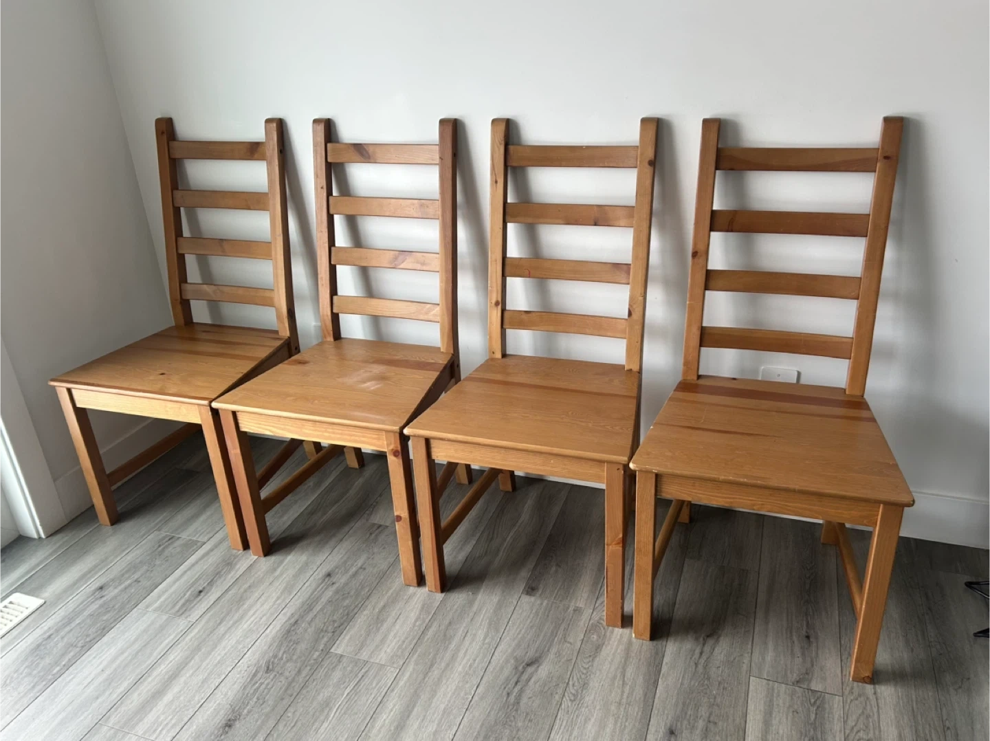 ($100 For All) Set of 4 IKEA Kaustby Wooden Dining Chairs with A Natural Finish. In Good Condition Has Wear As Shown In The Pictures.