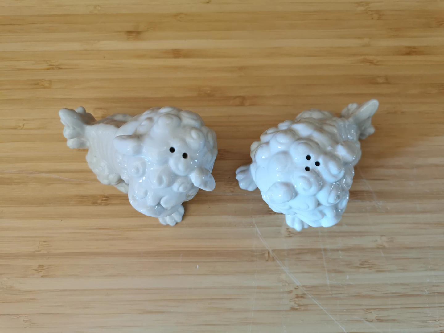 Vintage Foo Dogs White Porcelain Salt & Pepper Shakers.