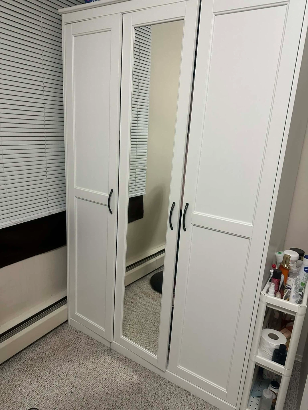 White 3-Door Wardrobe with Mirrored Center Panel