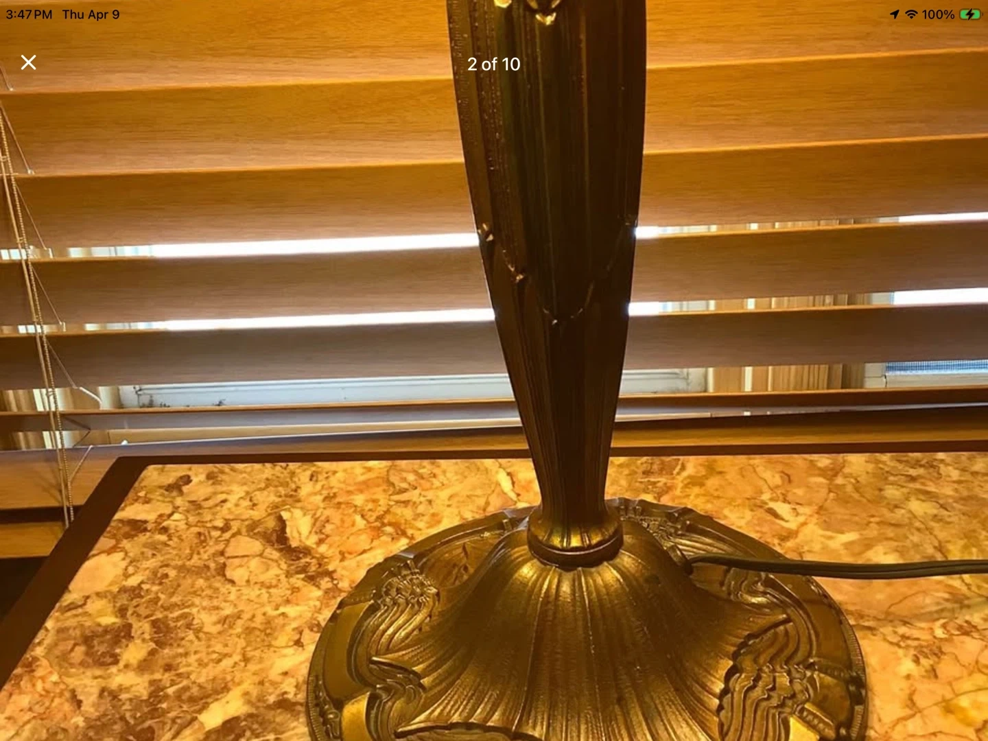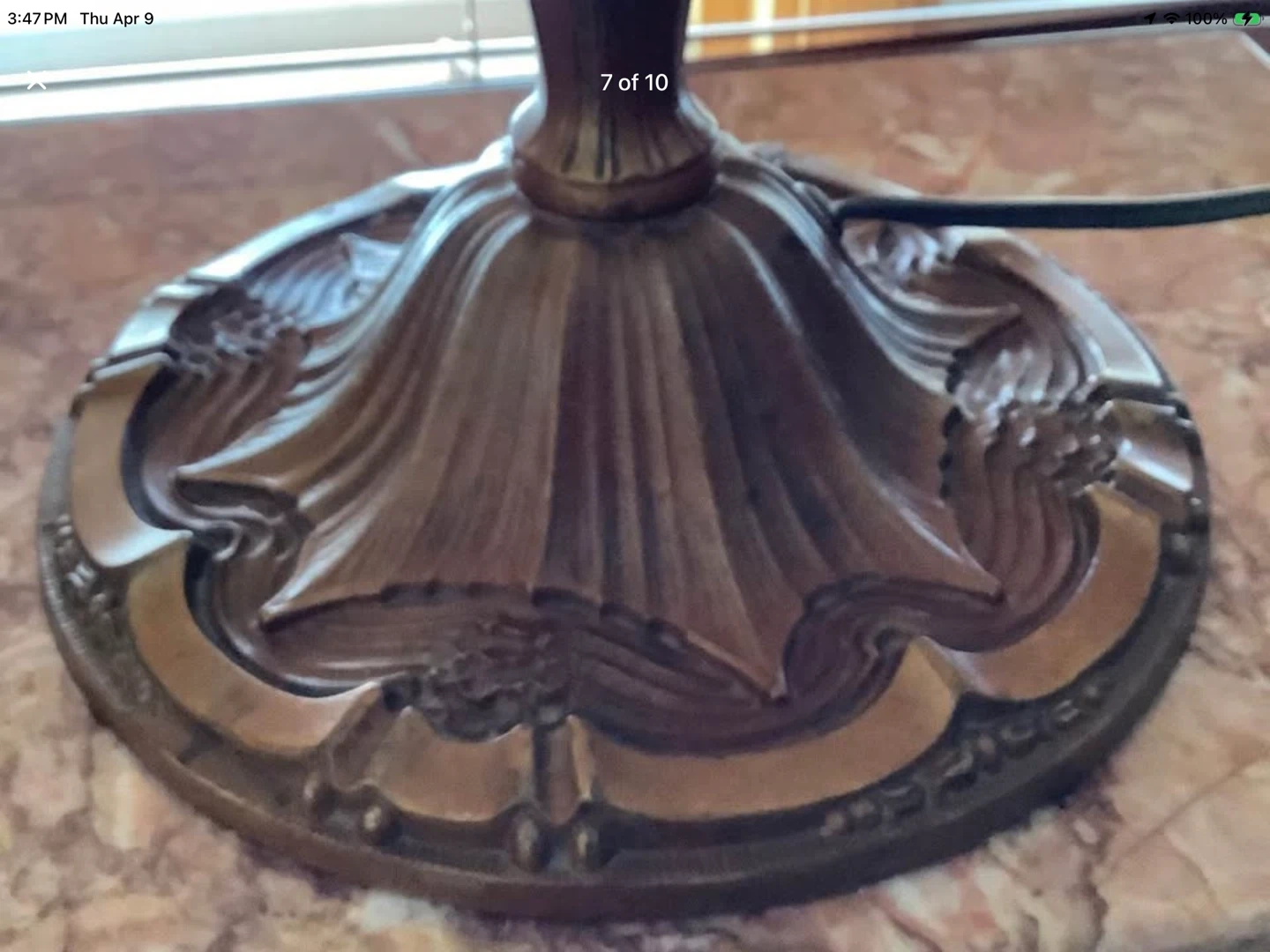 There is a small superficial hairline crack to one of the panels which is shown in the last photograph and reflected in the listed price. Works wonderfully. Any wear commensurates with the age.