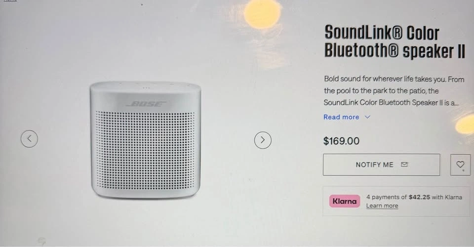 Buy & SellBose Soundlink II Bluetooth SpeakerBose Soundlink II Bluetooth Speaker$100Bose Soundlink Color II Bluetooth speaker in excellent condition! Amazing sound quality and super portable. Pickup in downtown Toronto.WHERE TO MEETCheck LocationView MapSELLERverifiedMoniqueCityPlace963 reviews1 chats·1 favorites·25 viewsSEND CHAT TO SELLERHi Monique! I’m interested in your listing.Hi Monique! I’m interested in your listing.Get the Karrot app to chatSign In to chat