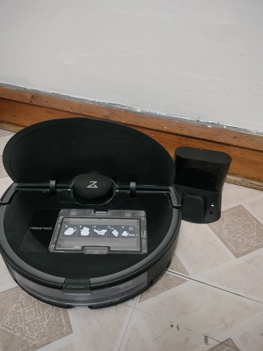 This is a Roborock robotic vacuum cleaner. It comes with its charging dock. Great for keeping floors clean with minimal effort! Needs new filters and mop attachments (cheap on amazon)