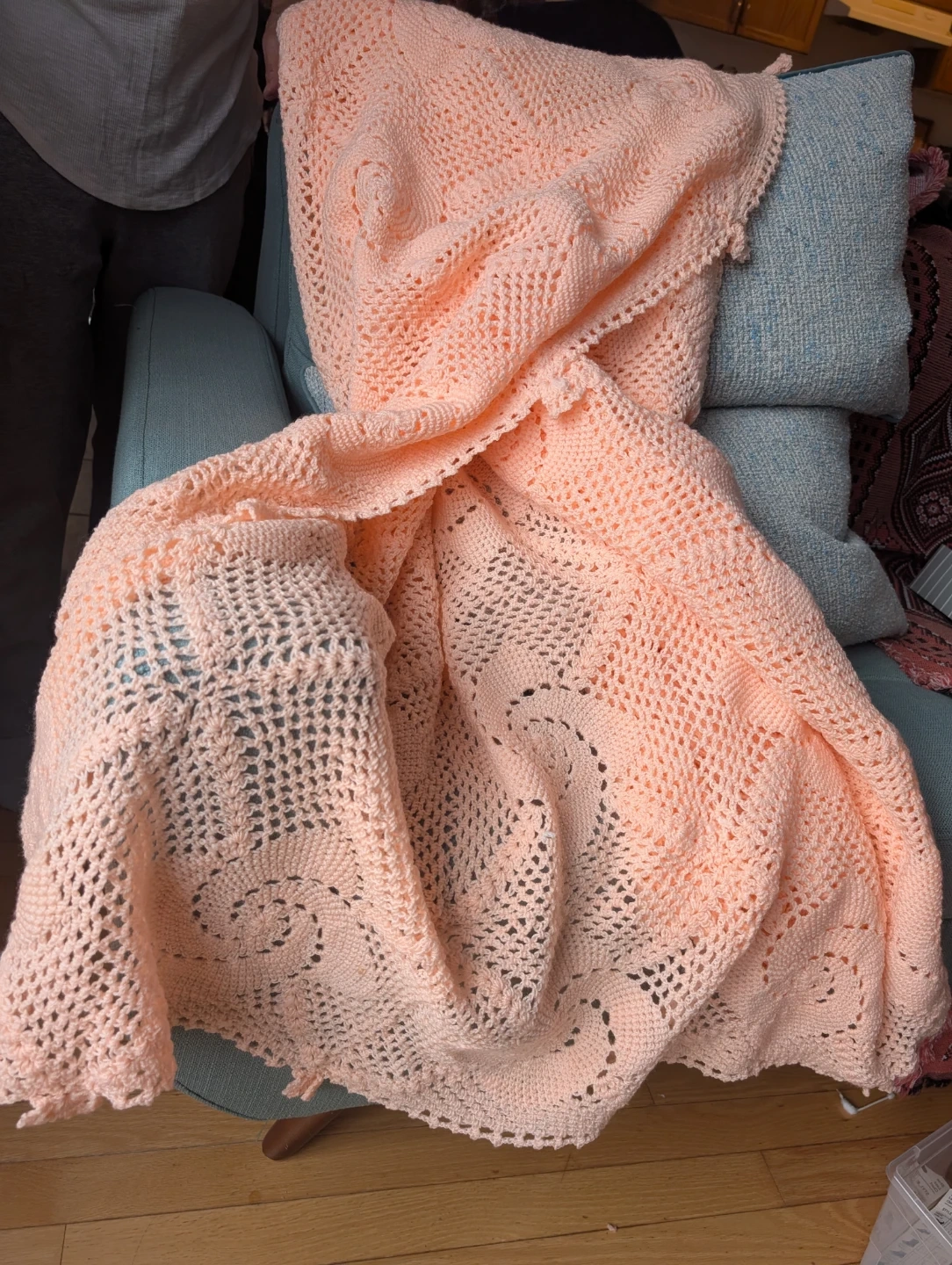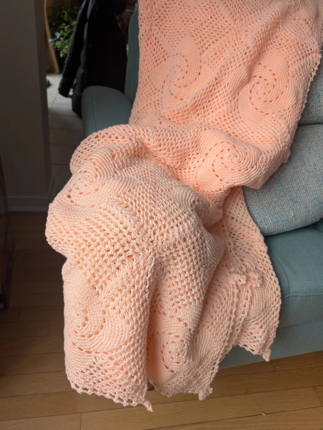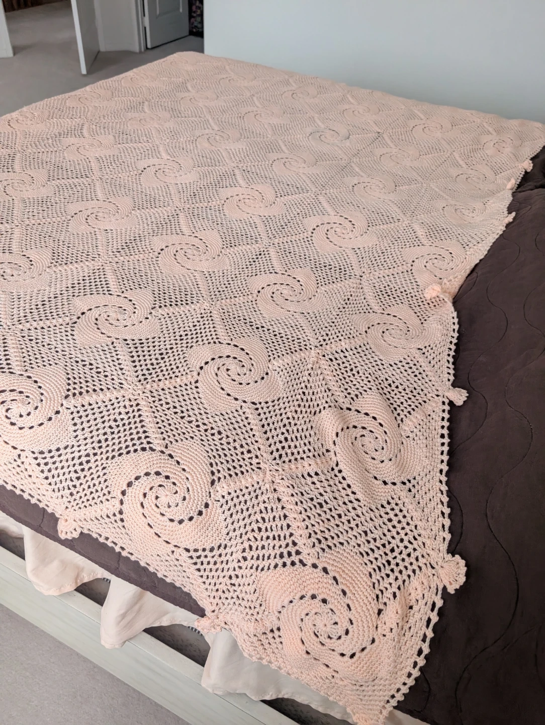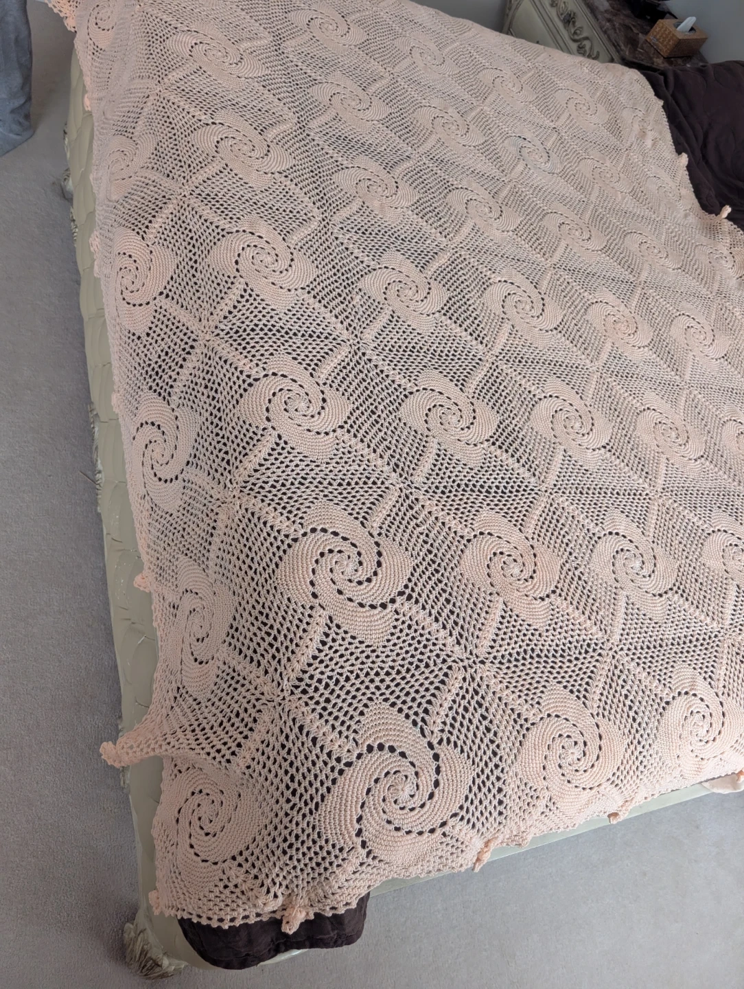 Vintage Handmade Crochet Bedspread β Soft Peach Color! π§Άβ¨