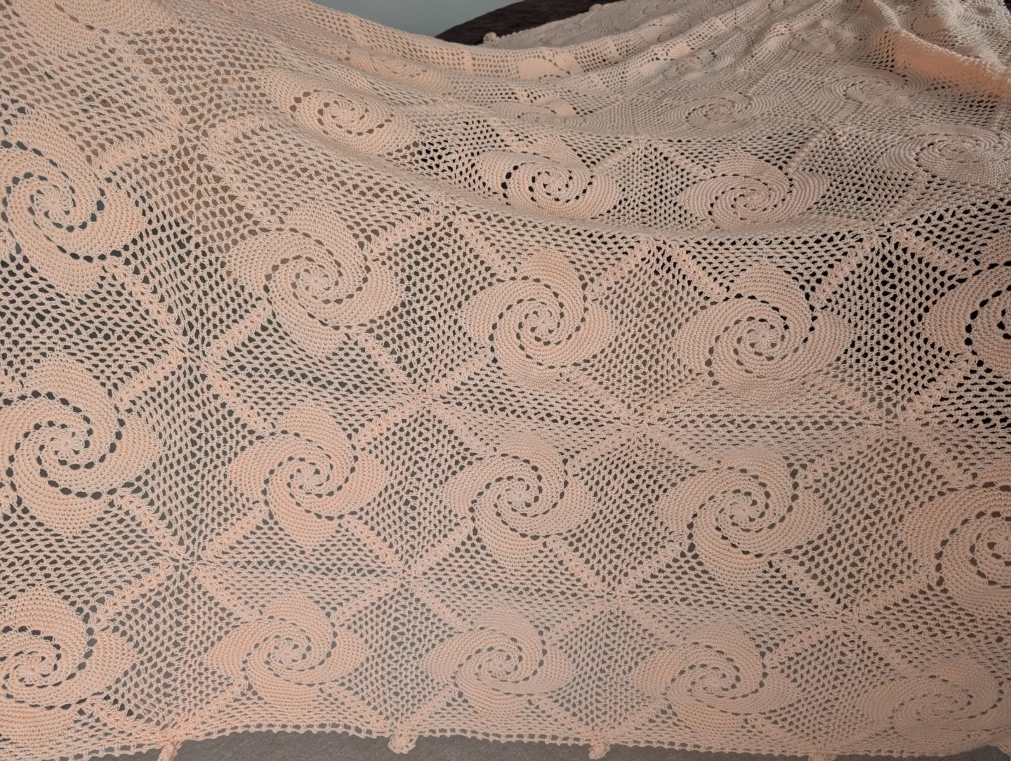 Vintage Handmade Crochet Bedspread β Soft Peach Color! π§Άβ¨