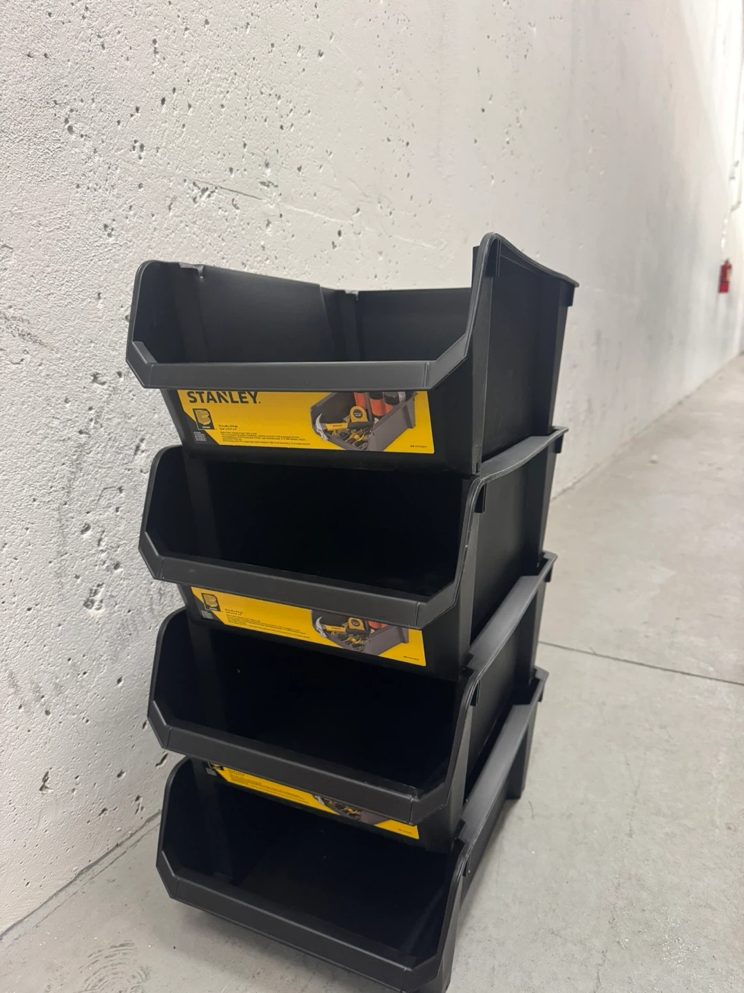 Selling a set of 4 Stanley 17.7” stackable storage bins. They are black and in New condition. Perfect for organizing your garage, workshop, or craft room. These are super handy for keeping things tidy and easy to find. All for $25.