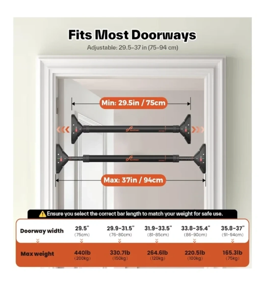 Moving sale - Sportneer Pull Up Bar - Adjustable 29.5"-37"