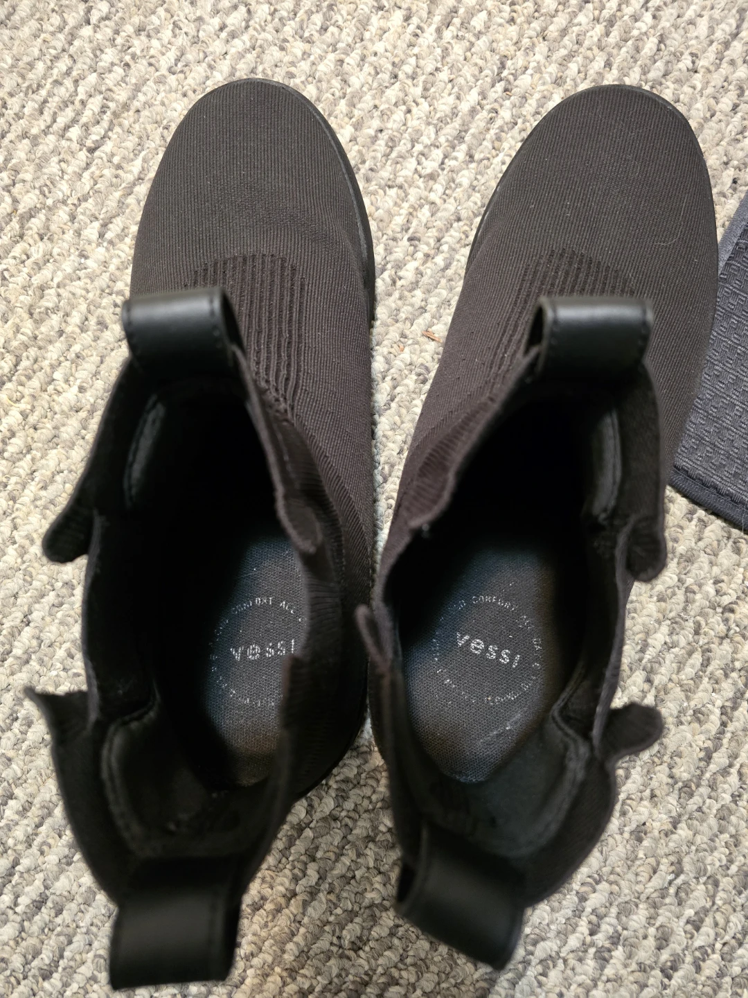 Selling a pair of Vessi Weekend Chelsea Boots in black. These are super comfy and stylish, perfect for everyday wear! They have some signs of use, as shown in the pictures.