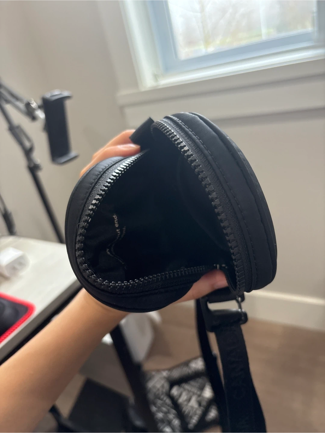 Selling a lululemon crossbody bag in black. It's in great condition and perfect for everyday use. The bag features a convenient adjustable strap and a secure zippered closure. It's a stylish and practical accessory for carrying your essentials